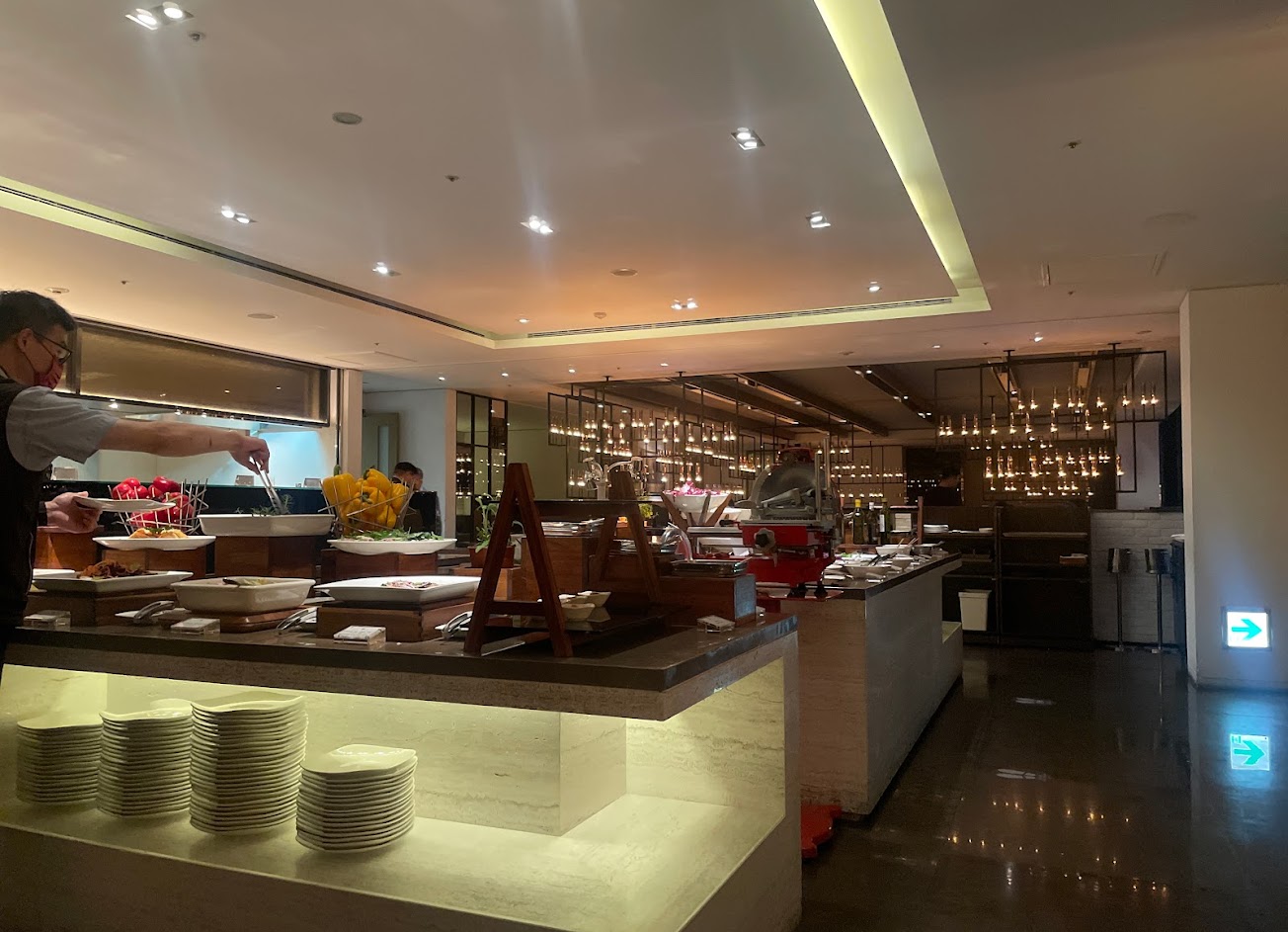 餐廳裝潢很有現代感,窗戶看出去是中庭花園,整體環境值五顆星,可是餐實在不好。我因為都吃新鮮的海鮮,通常不太會在外點海鮮,但看餐廳裝潢得怎麼高級,想說這麼好的餐廳食物應該不會太差。點了兩人份的什錦海鮮,定價3千多,超失望的。放在桌上都可以聞到腥味。自助吧台的餐擺設很漂亮,但也不怎麼好吃。之所以給2星而不是1星是因為招待的小姐服務態度很好。