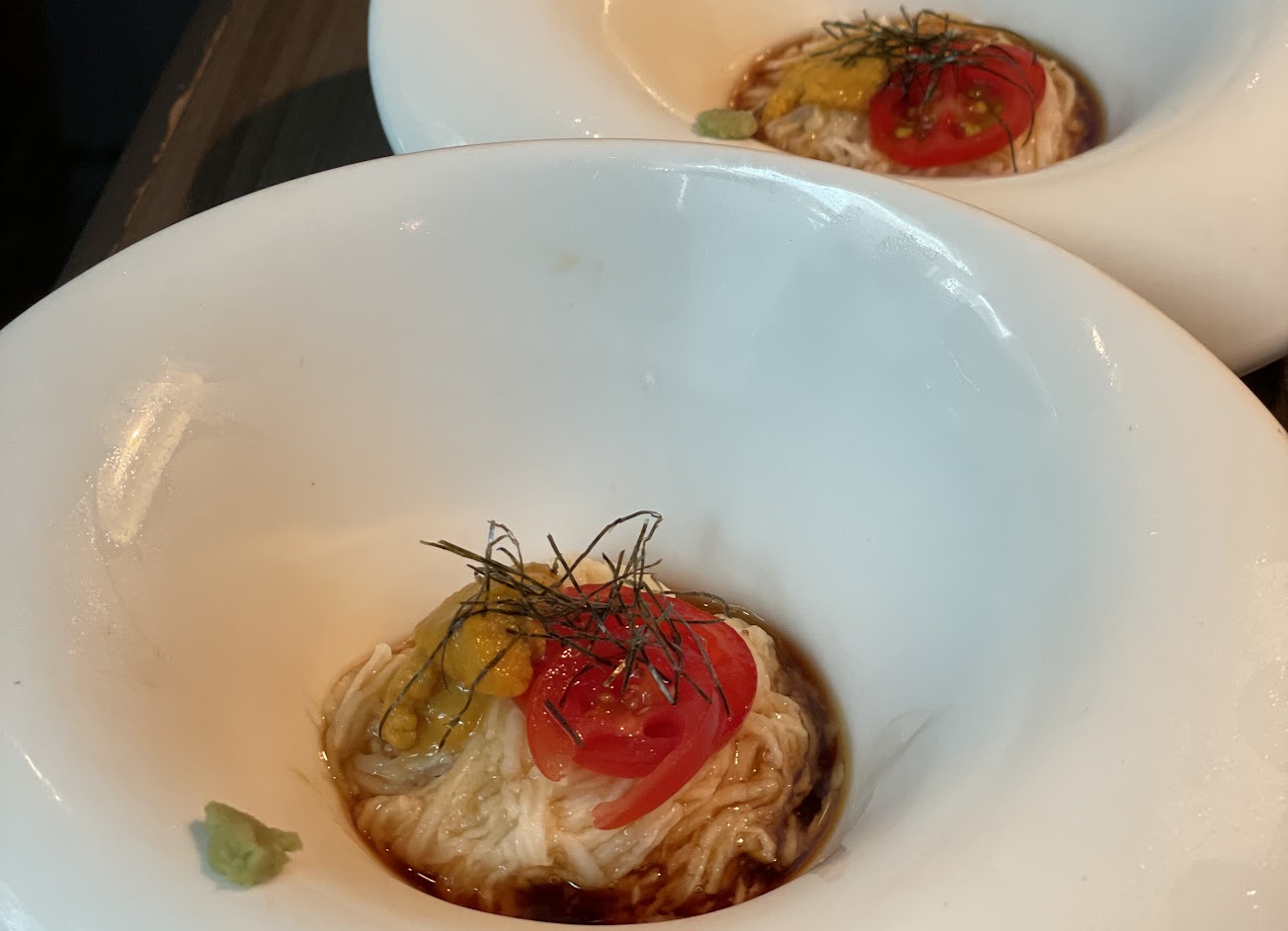 青蟳新鮮且甜美,蟹膏最終會由服務員加入粥裡一起熬煮,超美味。 松阪豬軟嫩,澳洲和牛有點太大片,導致嫩度感覺不足夠很快就膩了。 芝麻奶烙夠濃郁。 每位服務人員的桌邊服務都解釋的很到位,也很有一點專業度。