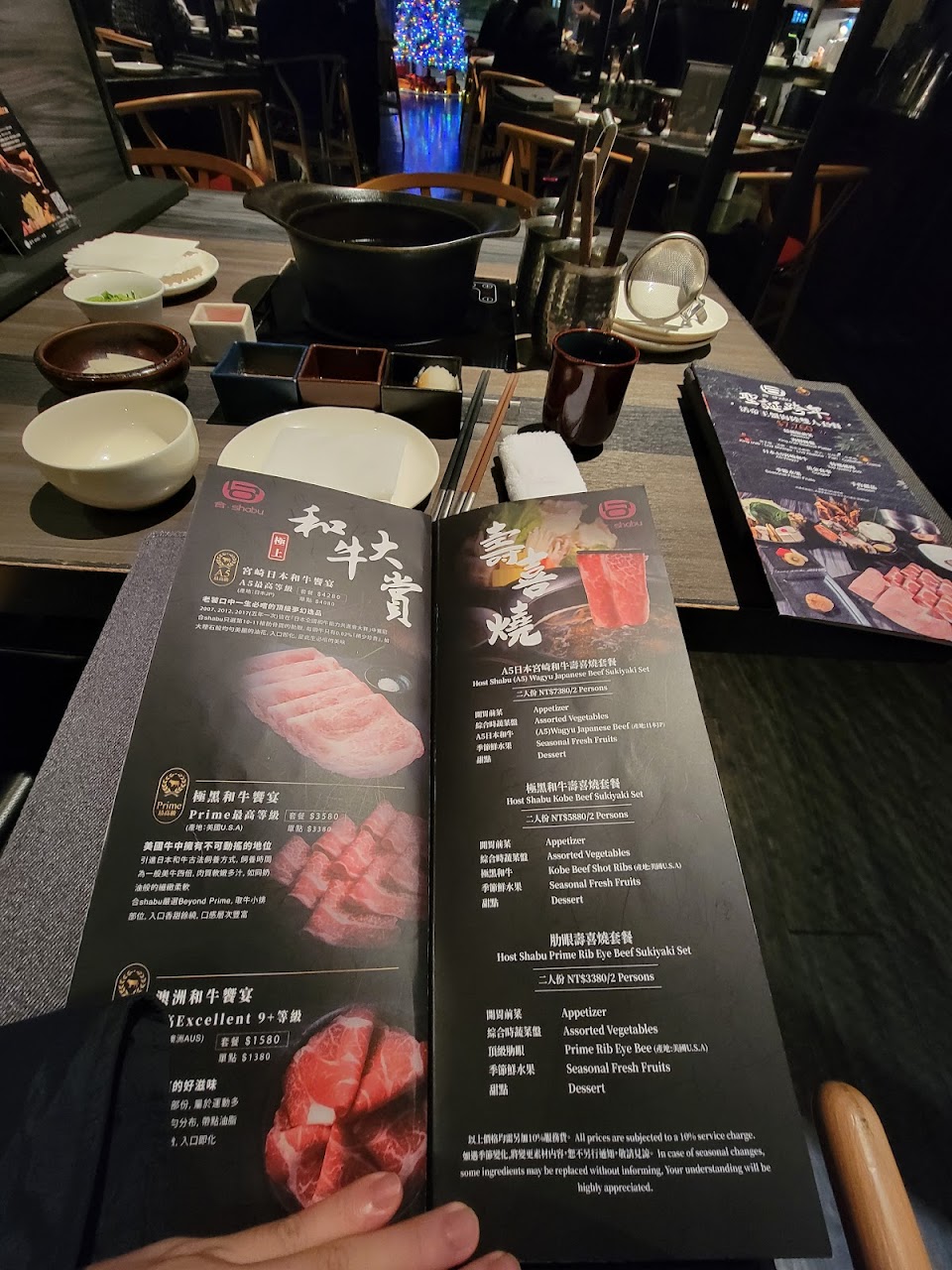 12/12第二次訪 對了聖誕節套餐 有和牛跟帝王蟹 $3780/二人套餐 cp值很高