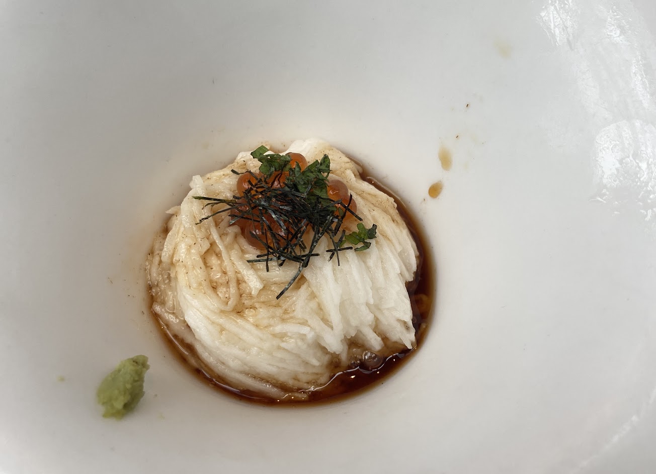 干貝是生食級,帶著五分熟,生甜的香味加上熟燙後的外表,口感一流!
