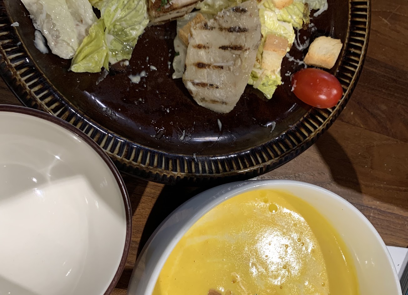 凱撒沙拉的醬很夠味,從頭到尾都能有足夠的醬汁。