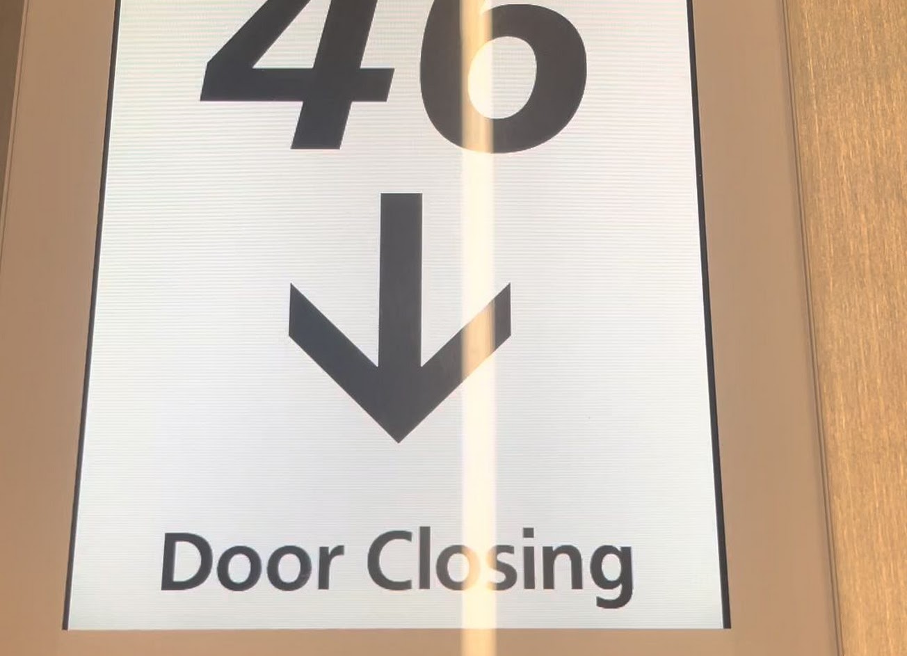 從信義微風一樓的電梯先搭到4樓,再依指示走到高樓電梯處轉搭至46樓即可到達~
