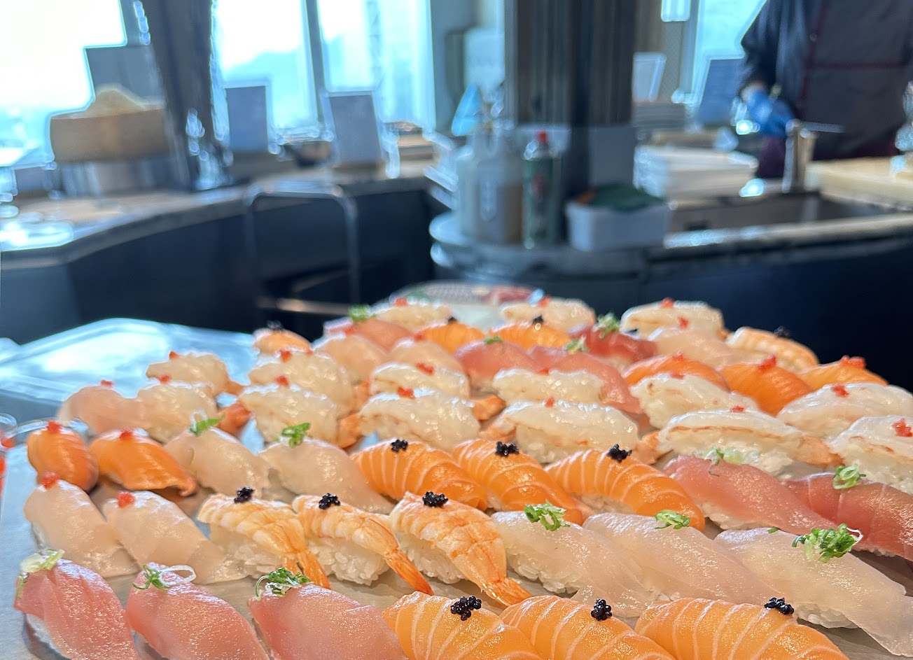 食材新鮮種類多 補貨的速度也非常快 雖然人多也不會排太久 大推炸蝦、比目魚鰭邊握壽司、煎干貝和牛小排 還有爐烤牛排附的松露薯泥也非常好吃? 整體而言表現都很不錯??