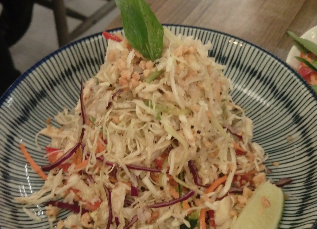 木瓜絲沙拉,餐吃了一半詢問後才上,調味不好又水水的、蝦口感軟軟的,附的蝦片有油耗味。