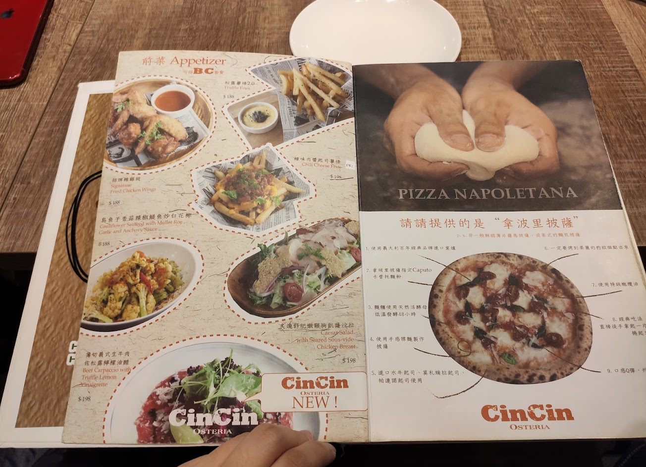 餐廳內部蠻大,有長桌適合多人聚餐的、也有圓桌適合三五好友小聚以及普通的兩人方桌。餐點種類很多,如有選擇性障礙的直接問店員推薦哪個最快,於是點了一份披薩跟兩樣主餐:燉飯及義大利麵。