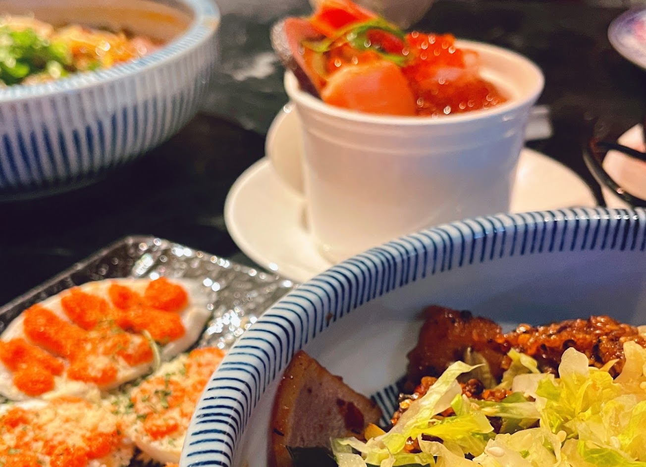 食物都很好吃(不過最期待的鮭魚卵蒸蛋反而沒什麼記憶點)服務態度也很好,可惜調酒不太ok,招待的shot喝起來也都只是酒精,很燒喉嚨(但一般招待的的確都不是什麼好酒啦)固定有表演現場很活絡,但如果是有跟三五好友相聚聊天就不推薦了,表演期間都只能用吼的⋯? …