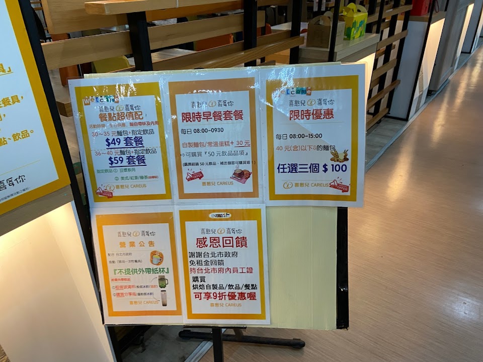 位於臺北市政府一樓大廳的南側,比起店面更像是走道上的大型攤位。座位數不少,大約有50個。