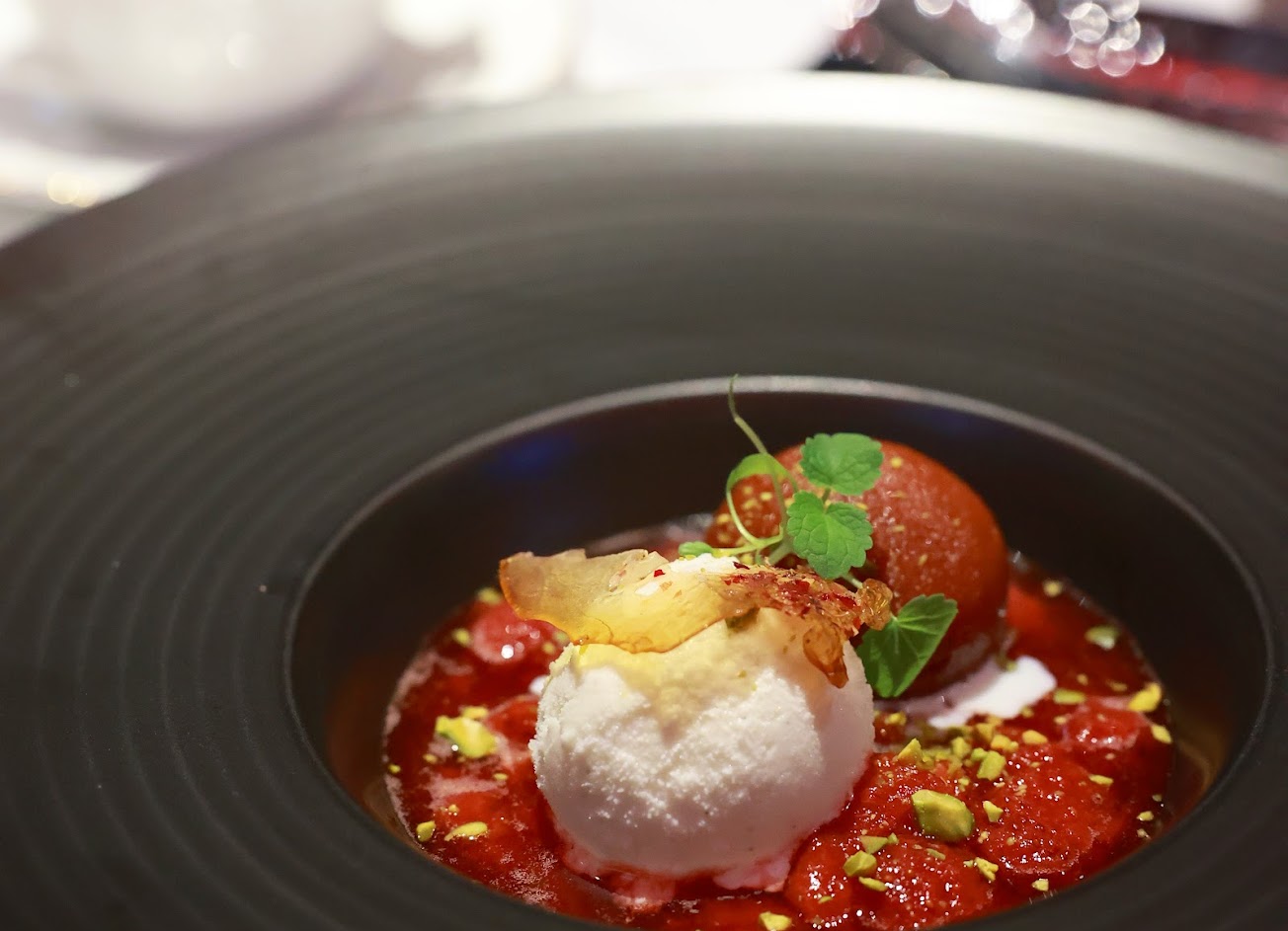 要說唯一的缺點,大概就是因為在微風南山46樓,空間很小桌距超擠,左右兩邊的人說話都聽得一清二楚,完全沒有在高級餐廳吃飯的感覺,用餐的舒適感完全配不上這頓飯的價格。且不知道是不是因為可容納客人太少,還被規定了用餐時間,感覺心情也太不悠閒了。