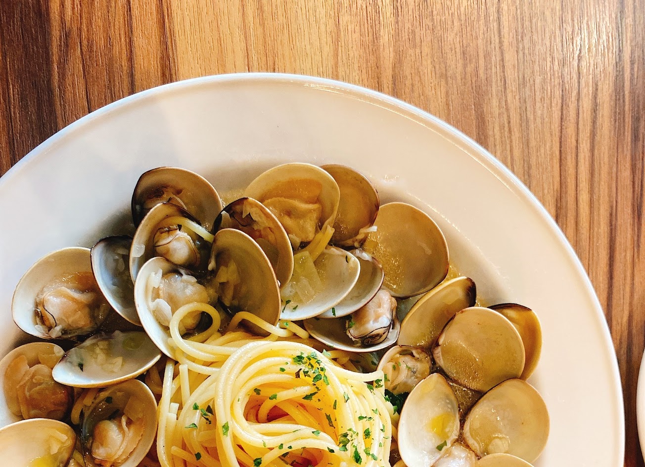 點了粉紅佳人燉飯和辣味蛤蜊麵