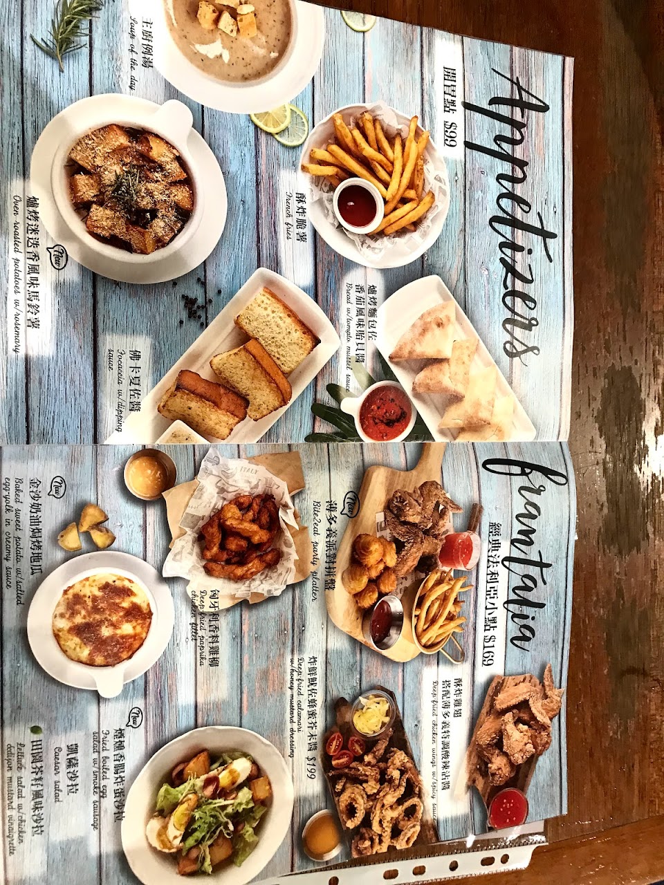 4.6?這間水準維持得也很不錯,今天五個人失心瘋點成了大餐,每個人主餐外加了四份套餐(前菜、甜點跟飲料),又叫了10支的炸雞腿雞翅、炸魷魚,還用點數換了一片pizza⋯