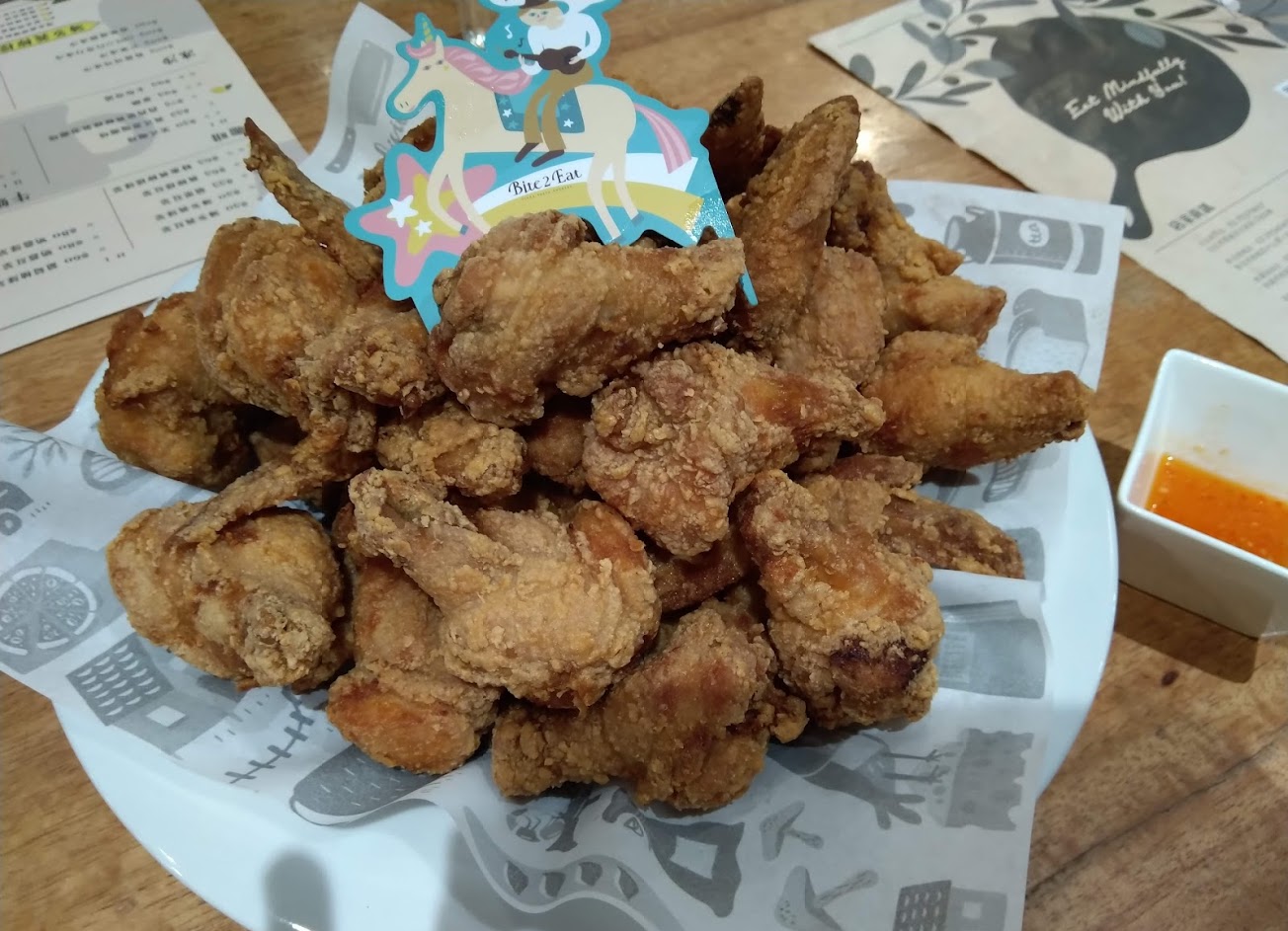 滿滿一盒浮誇的雞翅山,實在是太佛心來著,而且並不會是免費贈送而品質不佳,雞翅雞腿炸得酥脆可口,不輸給許多以炸雞聞名的名店,因此我們就很用力的啃將起來,實在是戰鬥力太薄弱,雖然努力不懈,但52隻雞翅,我們根本連半盒都吃不完呢⋯⋯
