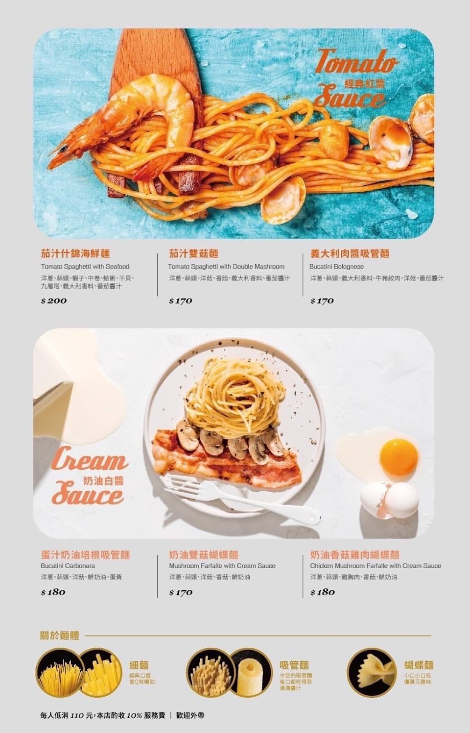 CP 值超高的義大利麵,非常好吃口味多元,來一定可以找到想吃的!