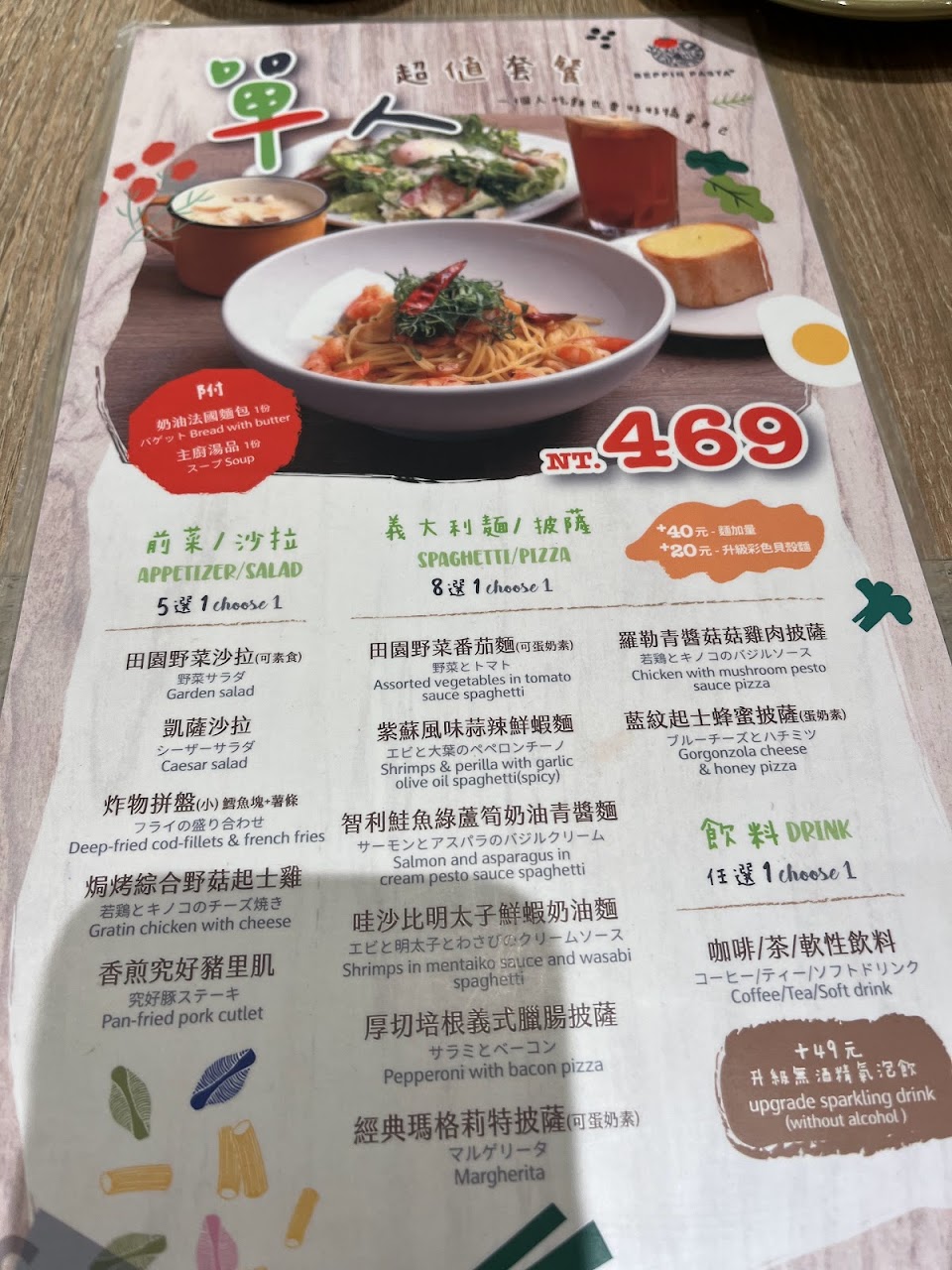 2024最新在地推薦餐廳的菜單_BEPPIN PASTA 義大利麵 統一時代店的菜單、圖片