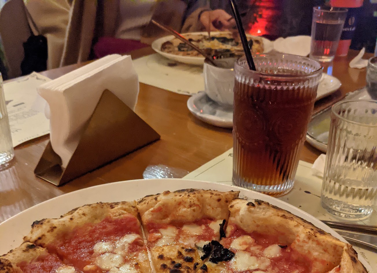 瑪格麗特好吃!但印象最深刻的是套餐附餐的紅烏龍和麵包,麵包口感很好,茶很香,非常出色,但墨魚燉飯醬汁有點腥,飯也濕濕水水的,燉飯沒收乾的感覺,整個不愛,下次只能點pizza了