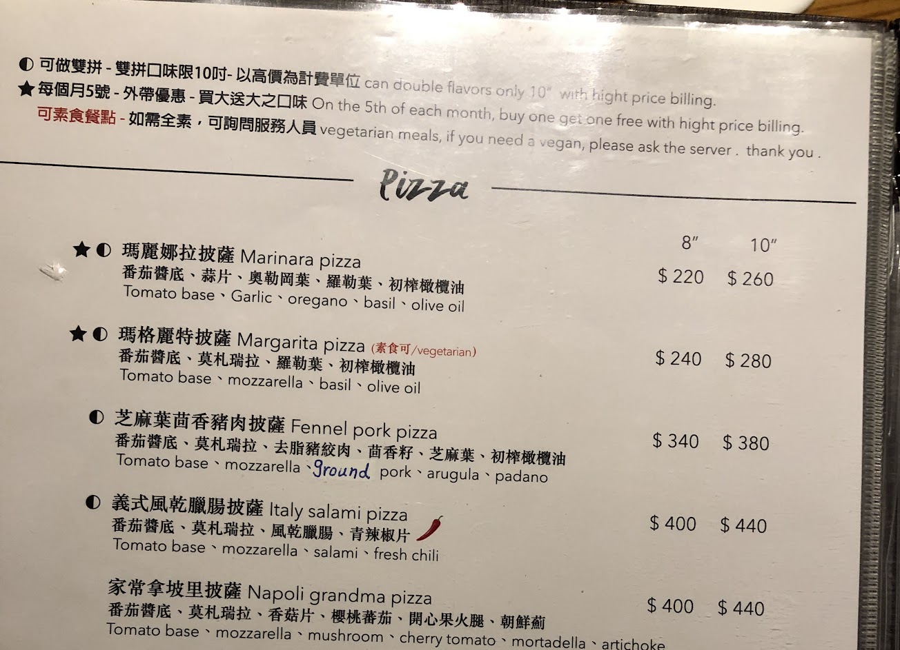 批薩真的好吃,感覺得出來是有到義大利學過的手藝,但服務態度可以再好一點,女店員感覺愛理不理