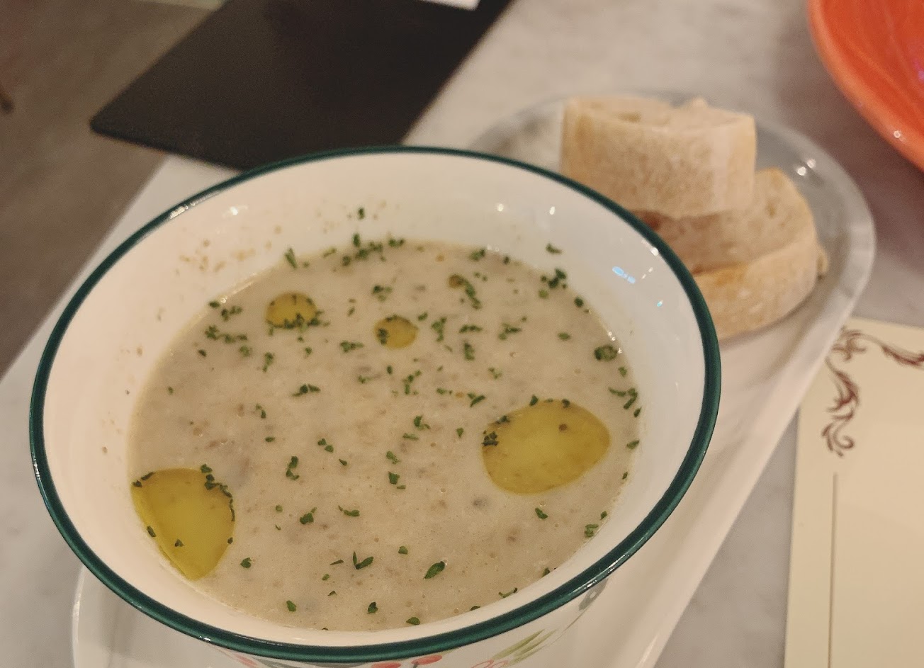 套餐裡面的奶油蘑菇濃湯不是我的菜,跟理想中有點不一樣,但是沙拉還不錯吃,麵包很有嚼勁(但個人覺得烤過的話會更好吃)。
