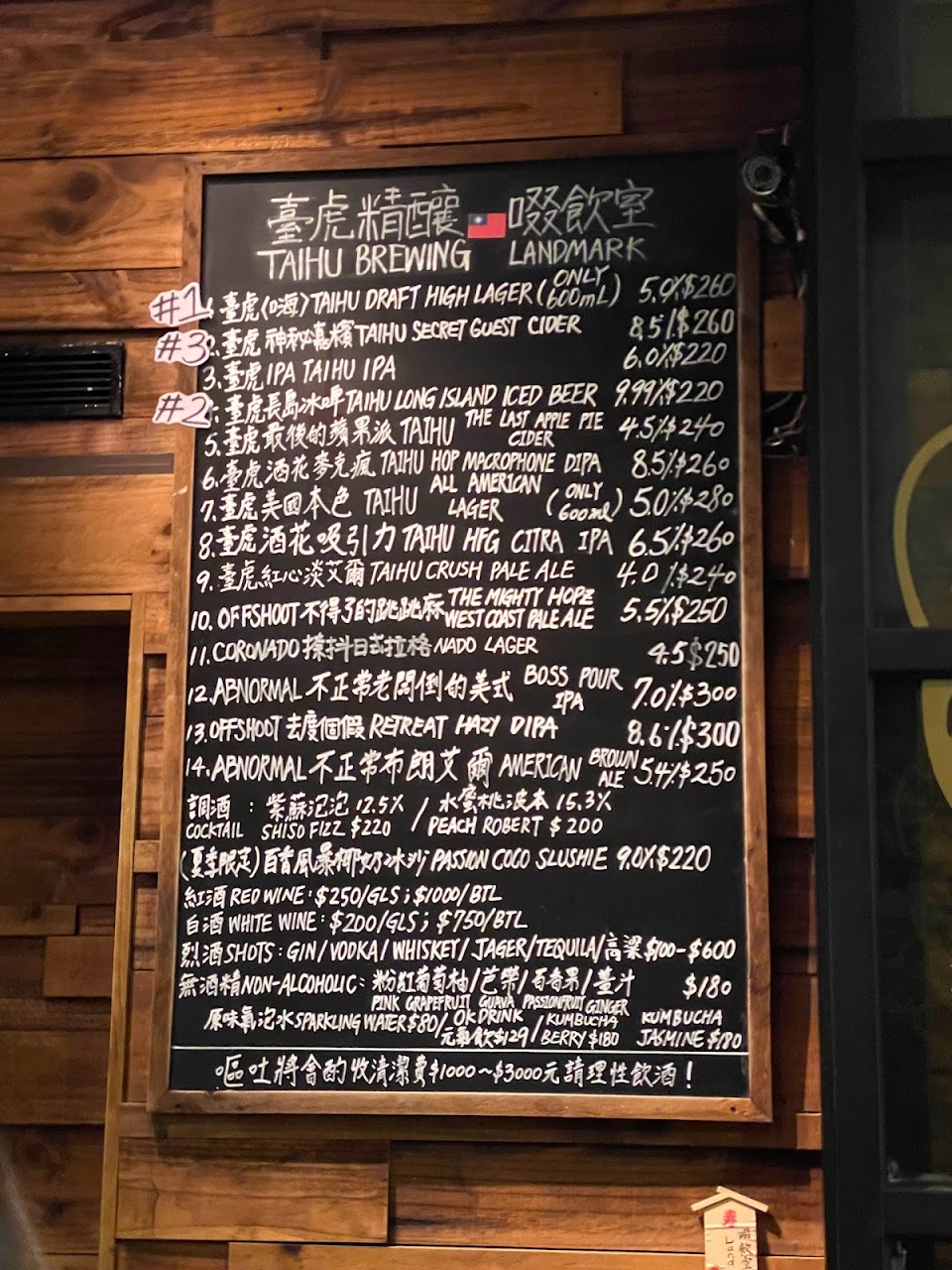 適合小酌聊天的地方,menu上面有許多種精釀啤酒可以提供選擇,除了啤酒以外也有調酒及無酒精飲品,點完以後可以在旁邊的桌子站著喝氣氛很棒,如果在信義區逛累了不妨來這邊喝兩杯呦?