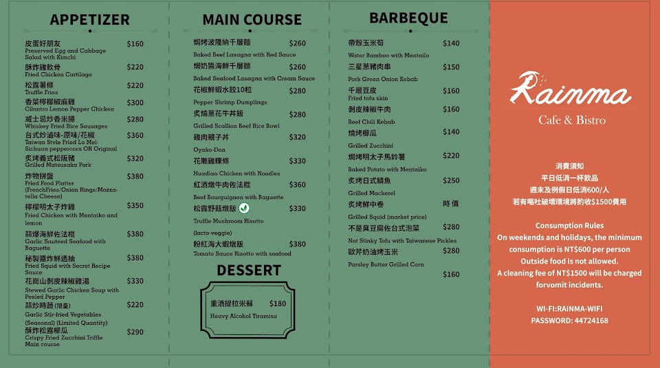 2024最新在地推薦餐廳的菜單_Rainma Café Bistro/老宅酒吧/復古雞尾酒/台式創意美食/信義區的菜單、圖片