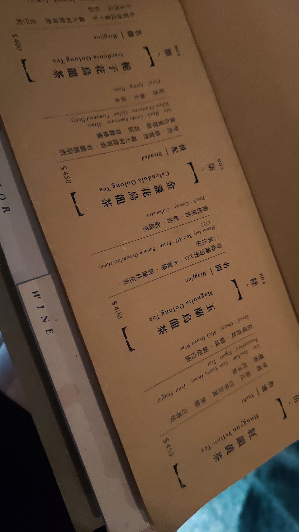 以茶為基底,整體氛圍真的很棒 日式氛圍迴繞整體,酒感輕可重 平均每人消費金額 $600-800 餐點:5 服務:5 氣氛:5