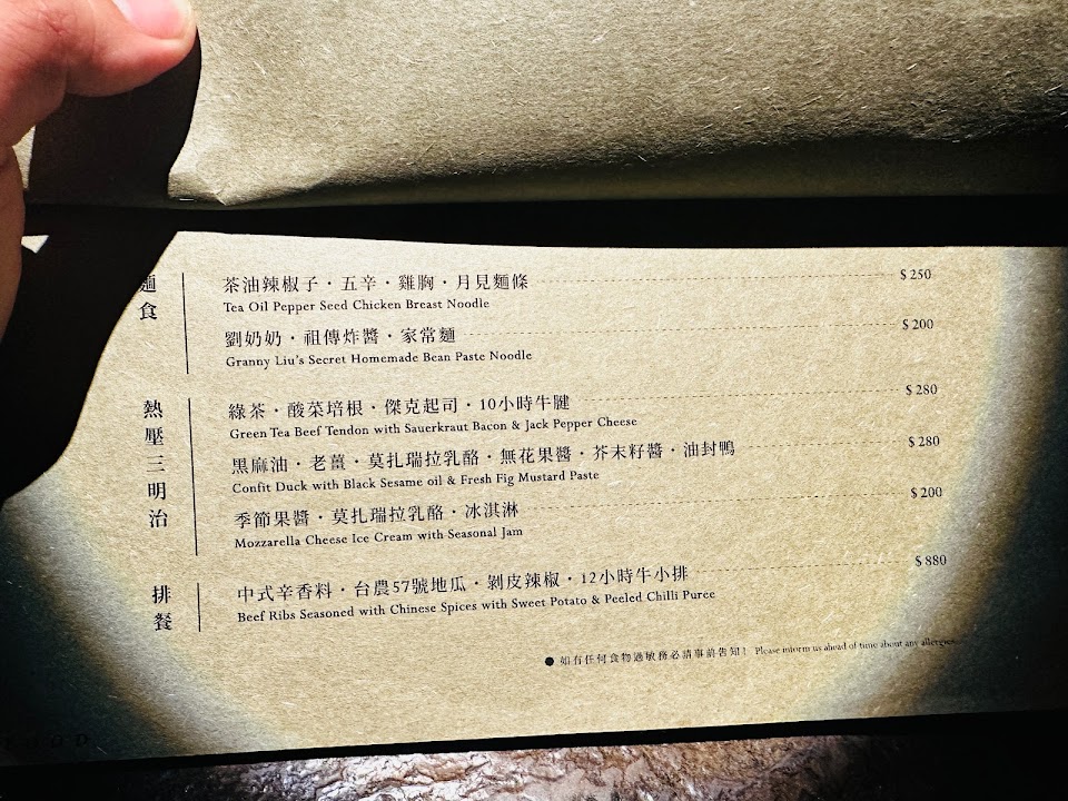 一踏進這個地方,就覺得他充滿神秘,不爆雷,要親自體驗,所有的酒都是茶基底,非常有特色,餐點也會融合一些茶的元素,真的很好吃! 平均每人消費金額 $800-1,000 餐點:5 服務:5 氣氛:5 建議的餐點 炸醬麵 口水雞