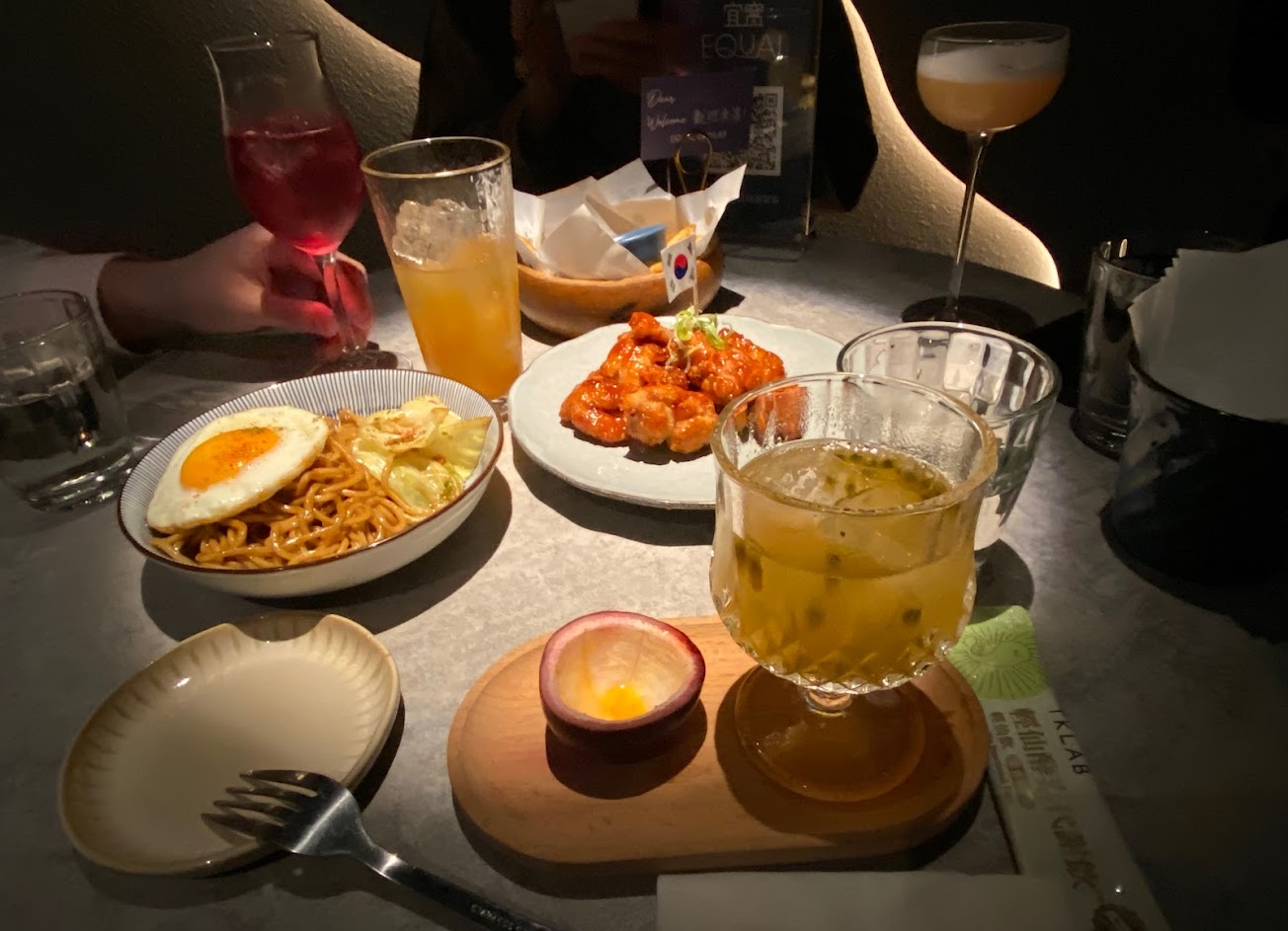 因為只是想吃美食沒有想點酒喝,所以單就評論吃的>< 總之4個人一致覺得份量很~少,所以大家吃完都滿空虛的,4個人的桌子很小,送餐上來就變的很擠,點了炸雞、披薩、薯條、炒麵等,優點是都不錯吃~✌? …