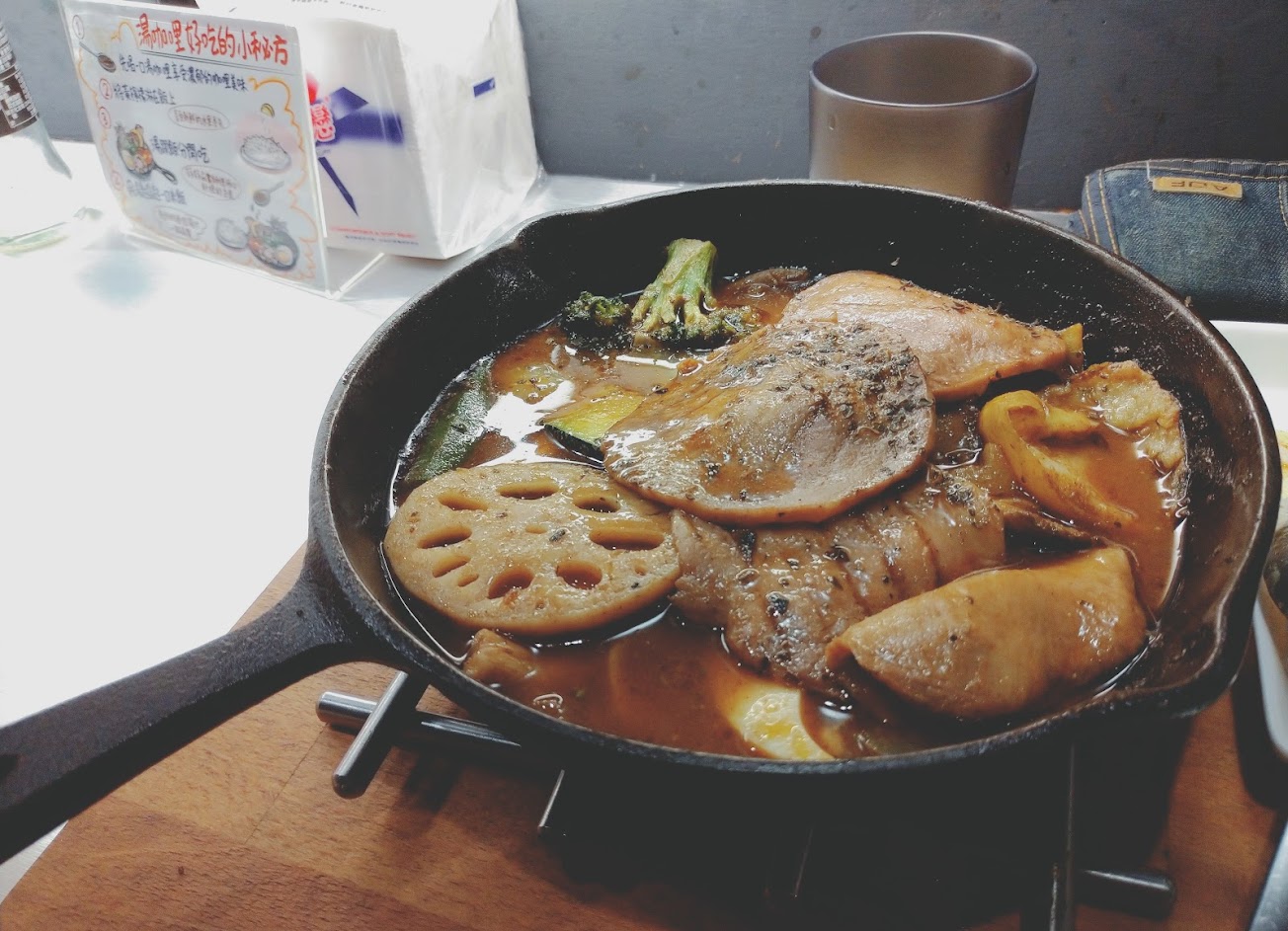 湯咖哩味道適中,配菜多樣化,美味料理。 唯一扣分的是地板有一點點滑,沒想到洗手間的地板莫名的更滑,店家也許該解決這個安全問題。