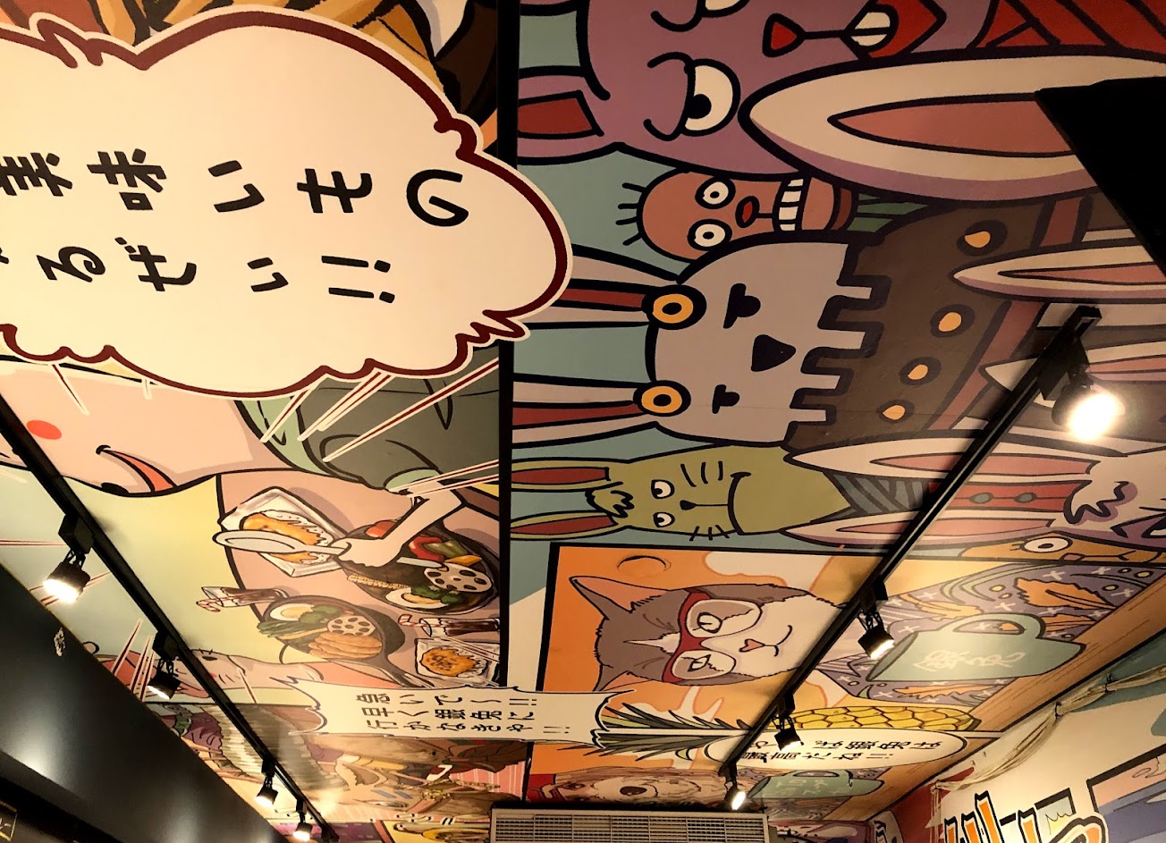 餐廳位子在捷運交通便利的地方,店內空間不大,卻裝潢的很活潑很可愛,很多以動漫畫在牆上讓人目不轉睛。