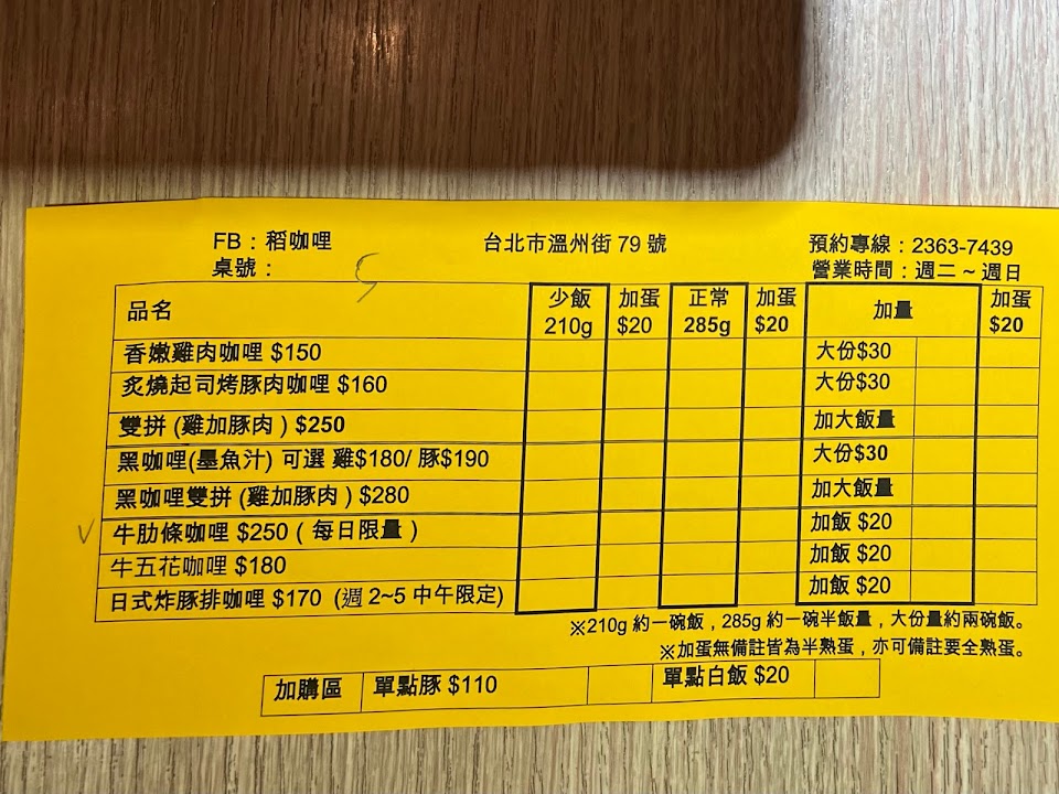 2024最新在地推薦餐廳的菜單_稻咖哩的菜單、圖片