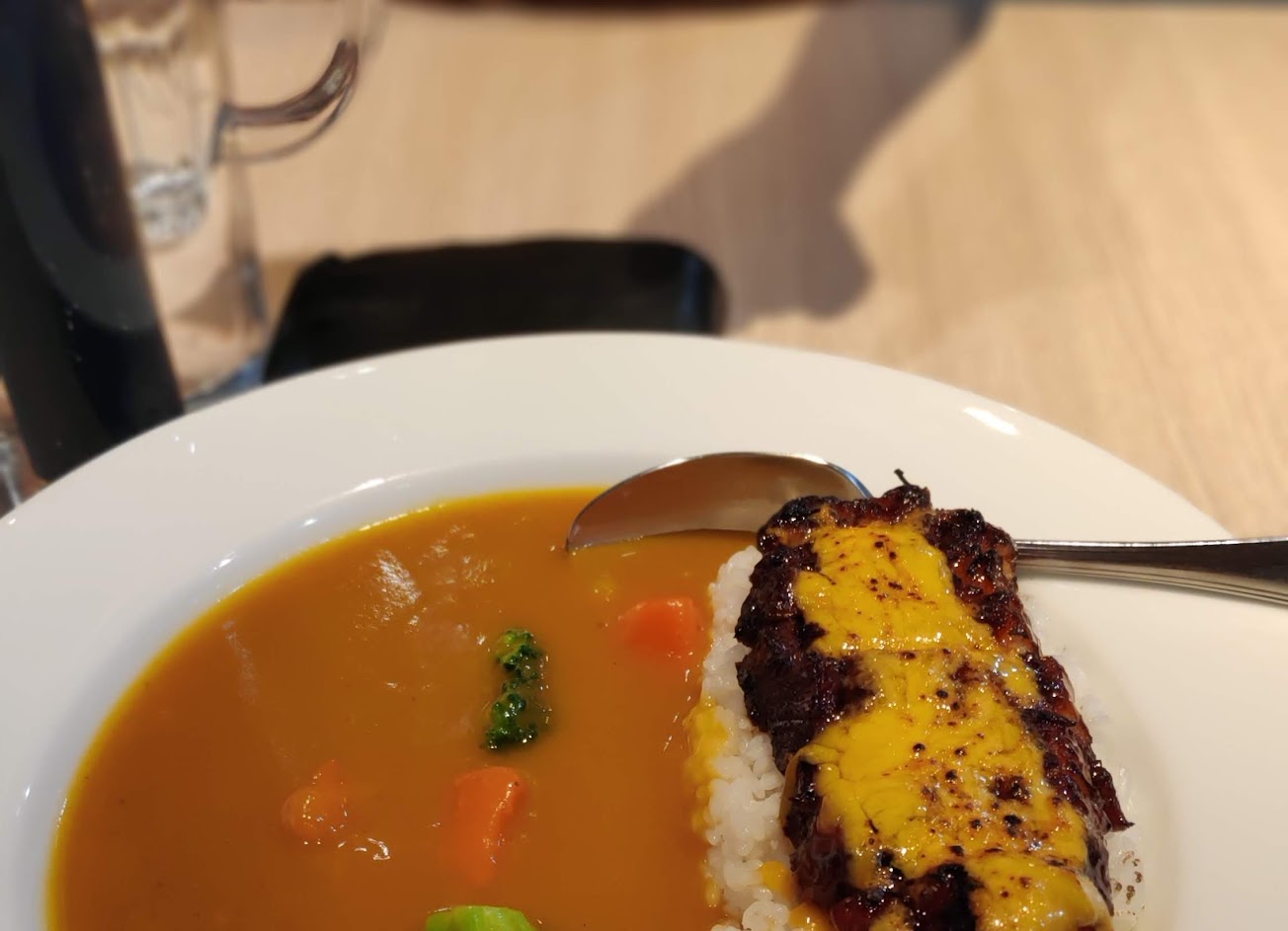 咖哩湯汁是日式,但不會像料理包一樣黏稠,有水果味,微微鹹,也有一種恰到好處的焦味。幾次上門都會把剩下來的咖哩醬喝光,是的,它不是湯咖哩,但它比湯咖哩更好喝!