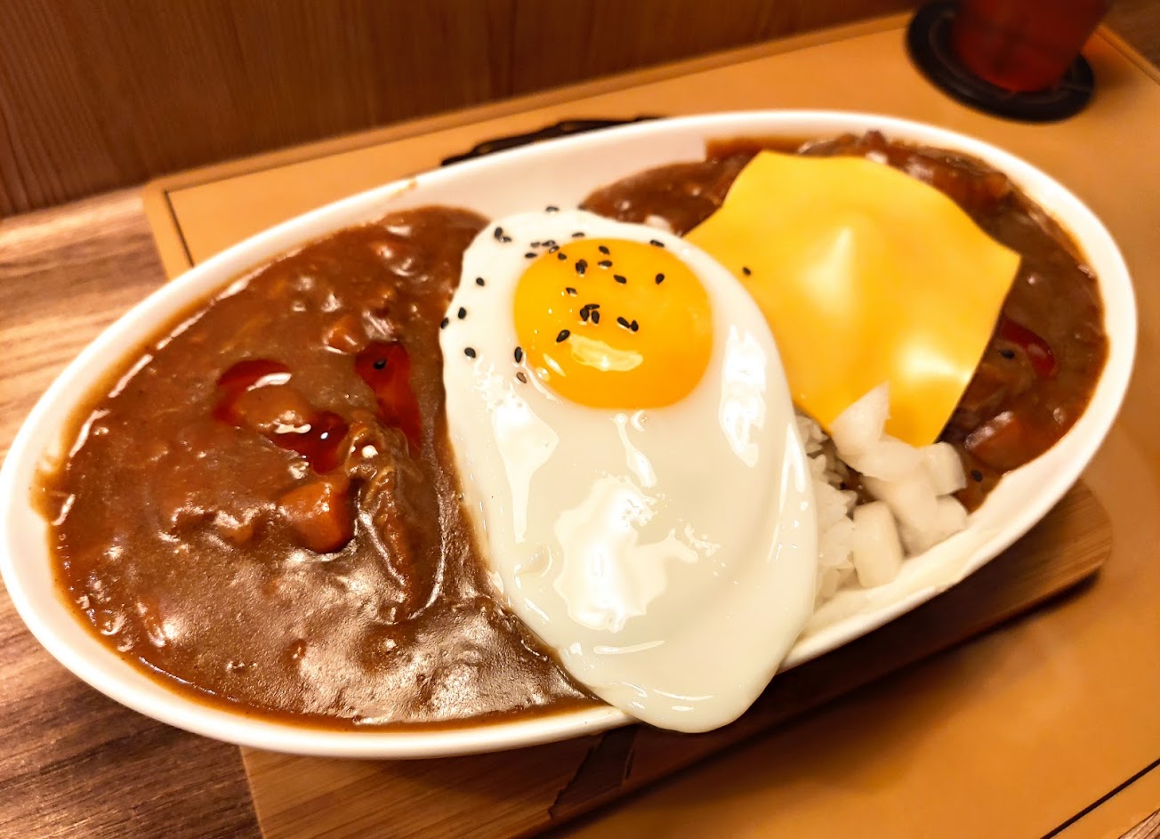 我想如果把起士漢堡排的部分不要直接蓋在咖哩上,比較能發揮咖哩的風味,但依用餐空間的大小,除了蓋上去說實在也沒有其他提升賣相的方法,固然有點難做調整。