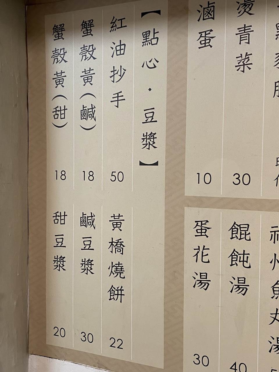 65年老牌豆漿燒餅店、燒餅是現烤的、表面香脆、黃橋燒餅、因為蔥粒是露出來的、香蔥烤得香脆、蟹殼黃燒餅因為香蔥是內包的、裏面香蔥就多汁嫩滑、兩個不同嘅境界、鹹豆漿內有油條、炸菜粒、香蔥、小小食醋、當然有豆漿、不錯的體驗和口感、食完之後再來一杯微糖凍豆漿、真係一個完美嘅句號!