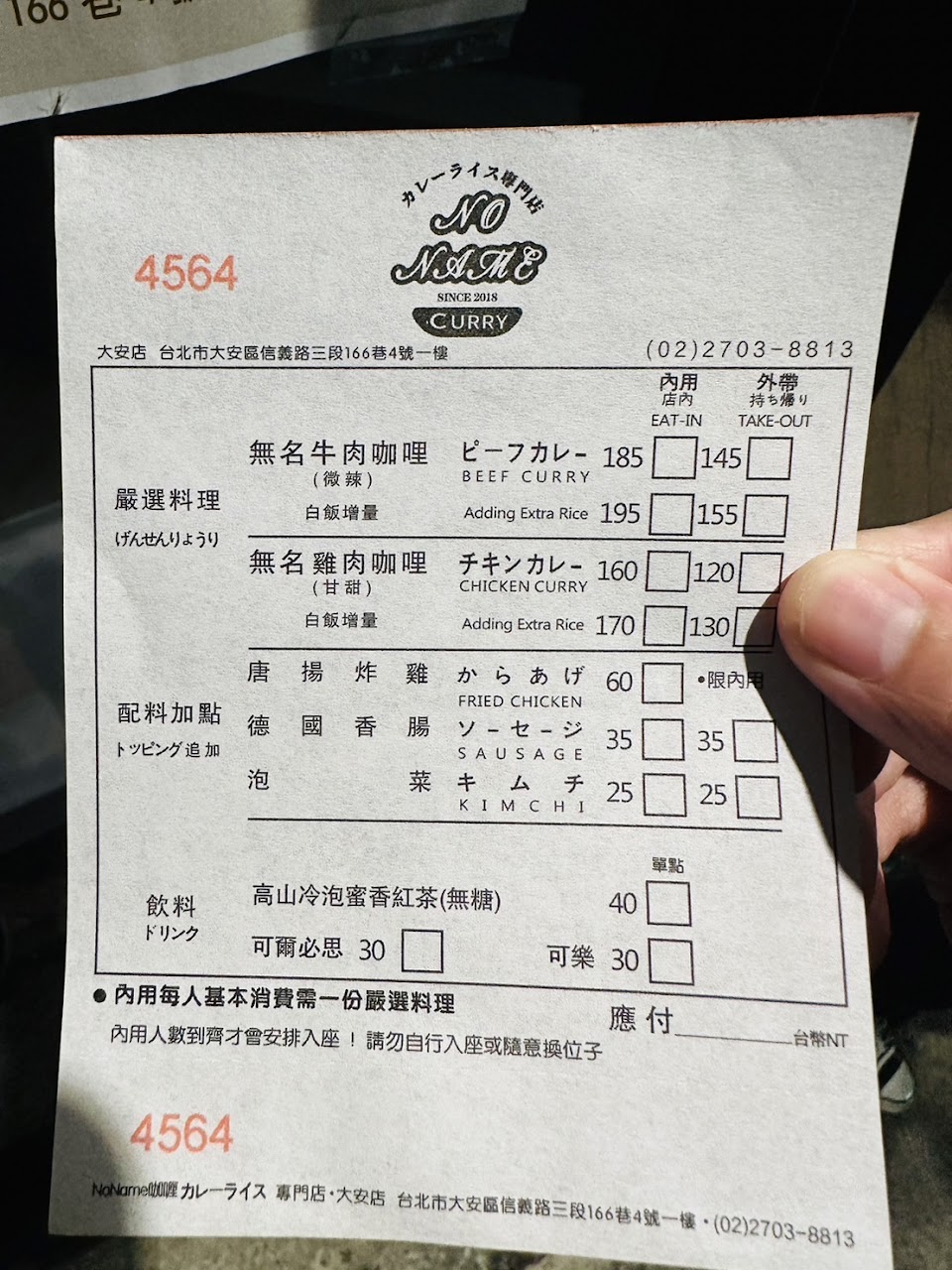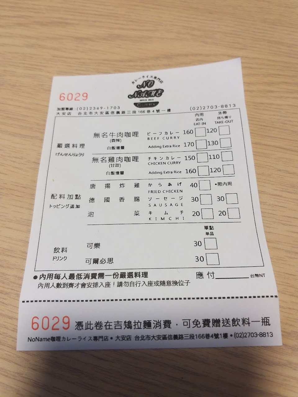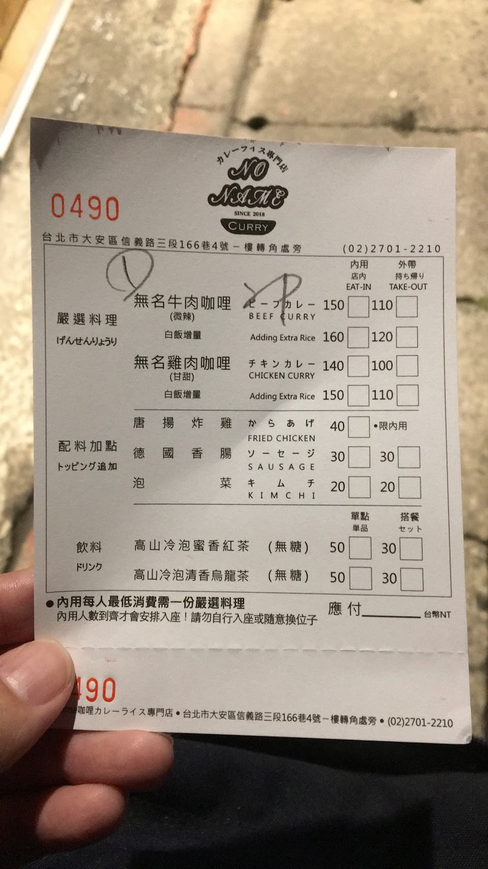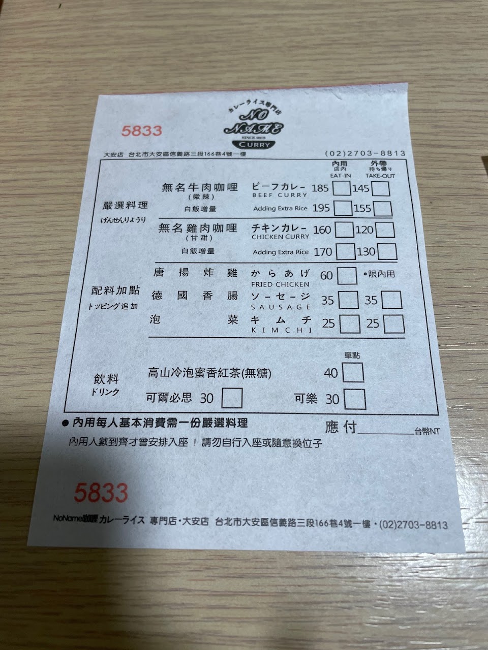 2024最新在地推薦餐廳的菜單_NoName咖哩カレーライス專門店的菜單、圖片