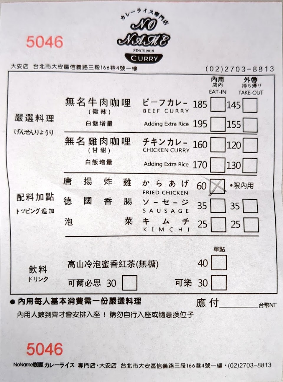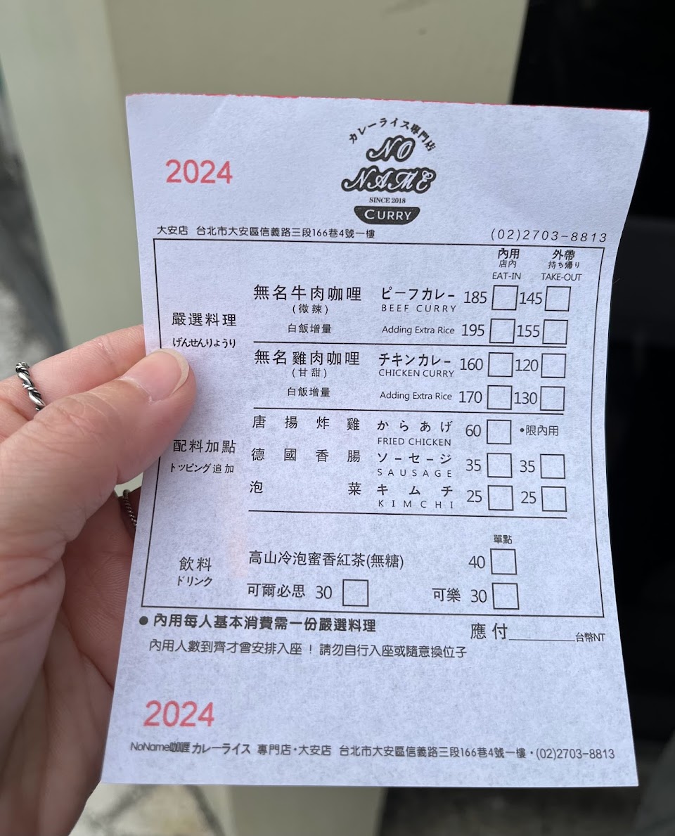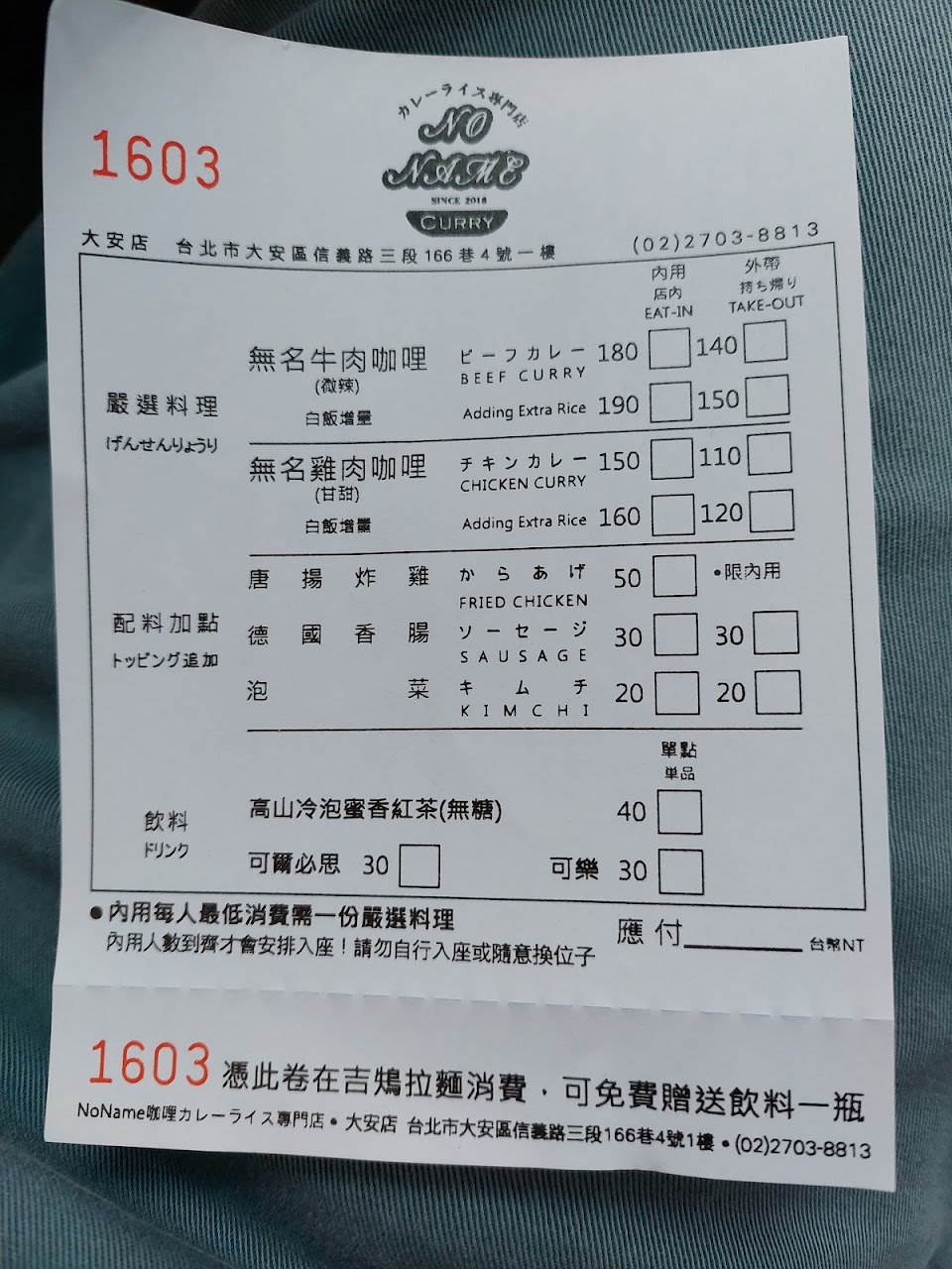 2024最新在地推薦餐廳的菜單_NoName咖哩カレーライス專門店的菜單、圖片