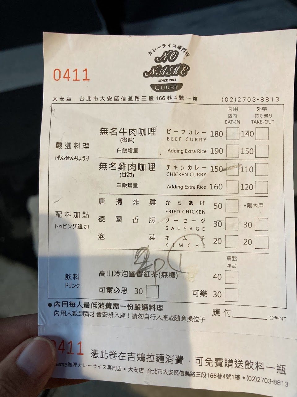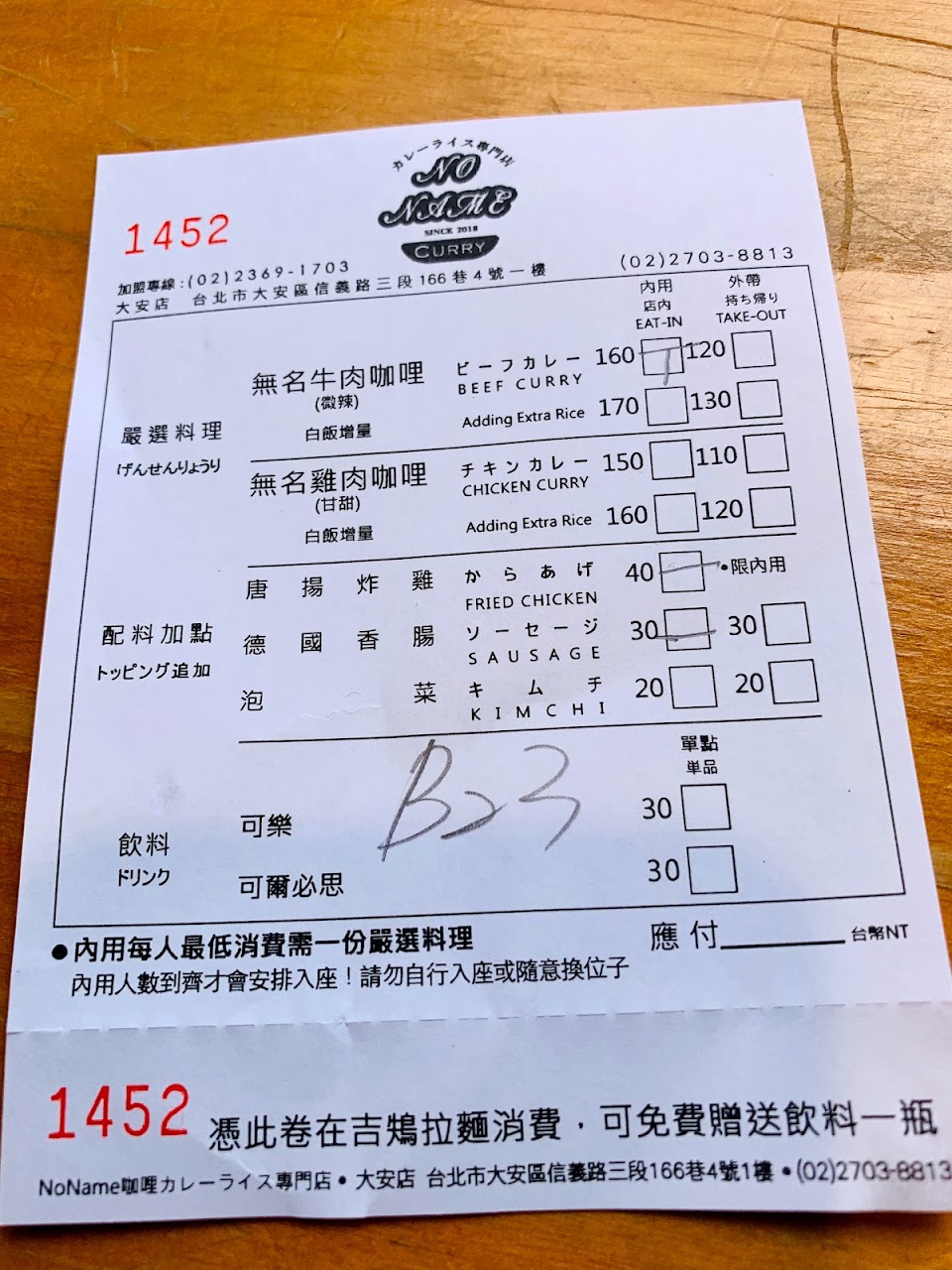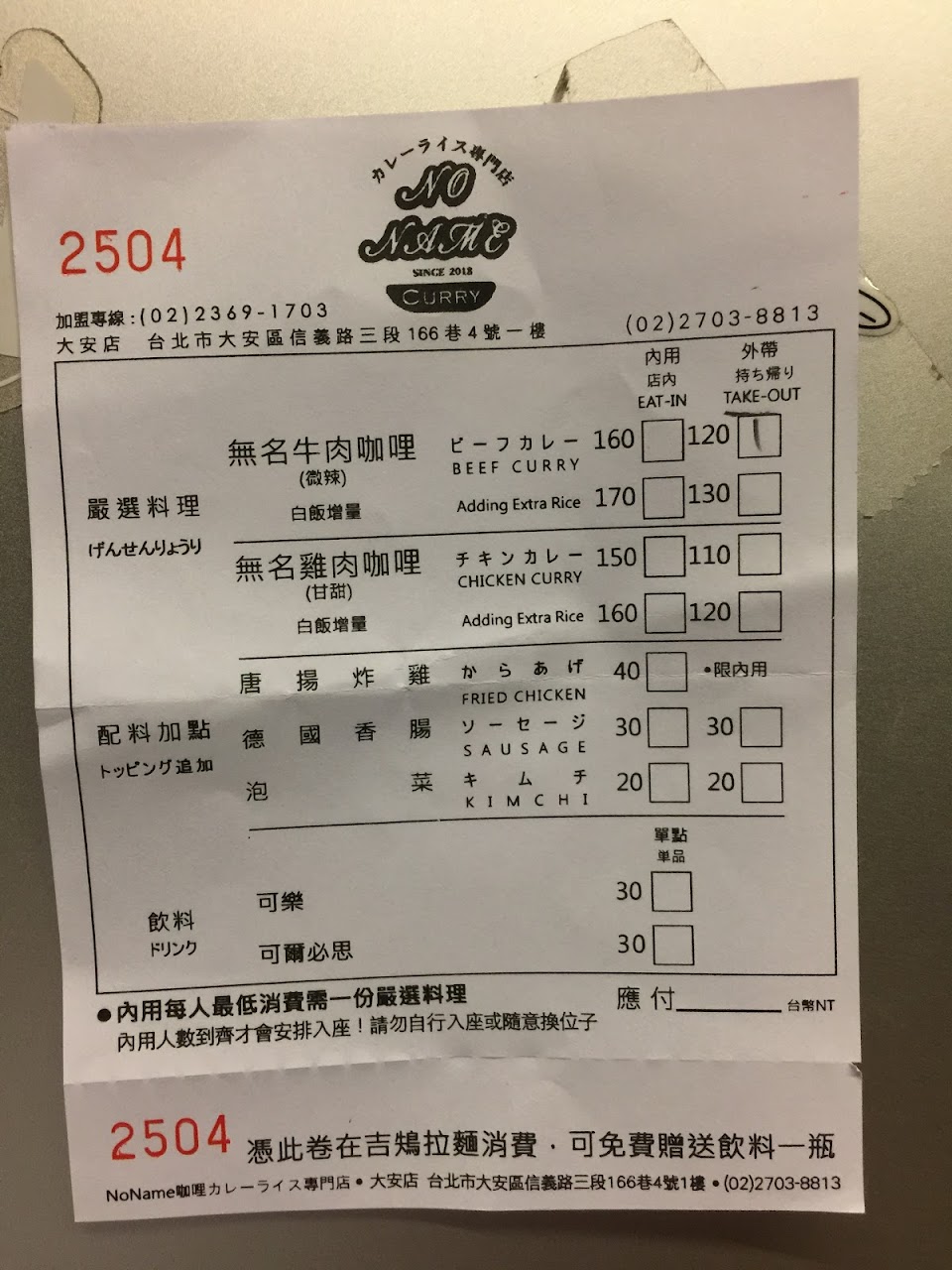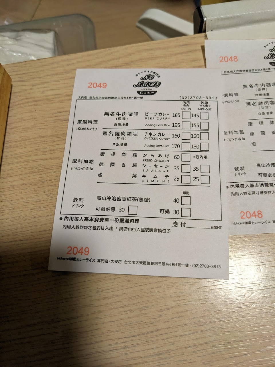 2024最新在地推薦餐廳的菜單_NoName咖哩カレーライス專門店的菜單、圖片
