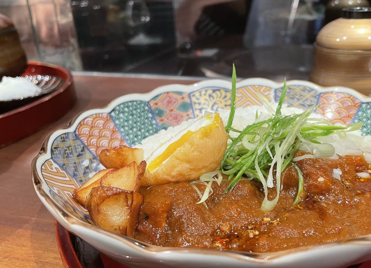 咖哩微辣、微甜(可以告知不加辣)仔細品還會有一點點酸~ 層次好多!肉雖然不多,但是牛肉很嫩好好吃,肉香也都在。炸物點牛蒡天婦羅,牛蒡味道不搶也不嗆,很剛好~ 溏心蛋外層有炸過,讓配料多了一些口感