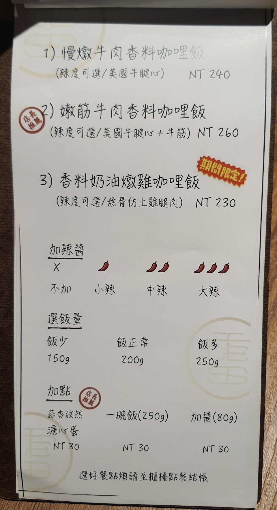 2024最新在地推薦餐廳的菜單_雷咖哩 且吃且珍惜的菜單、圖片