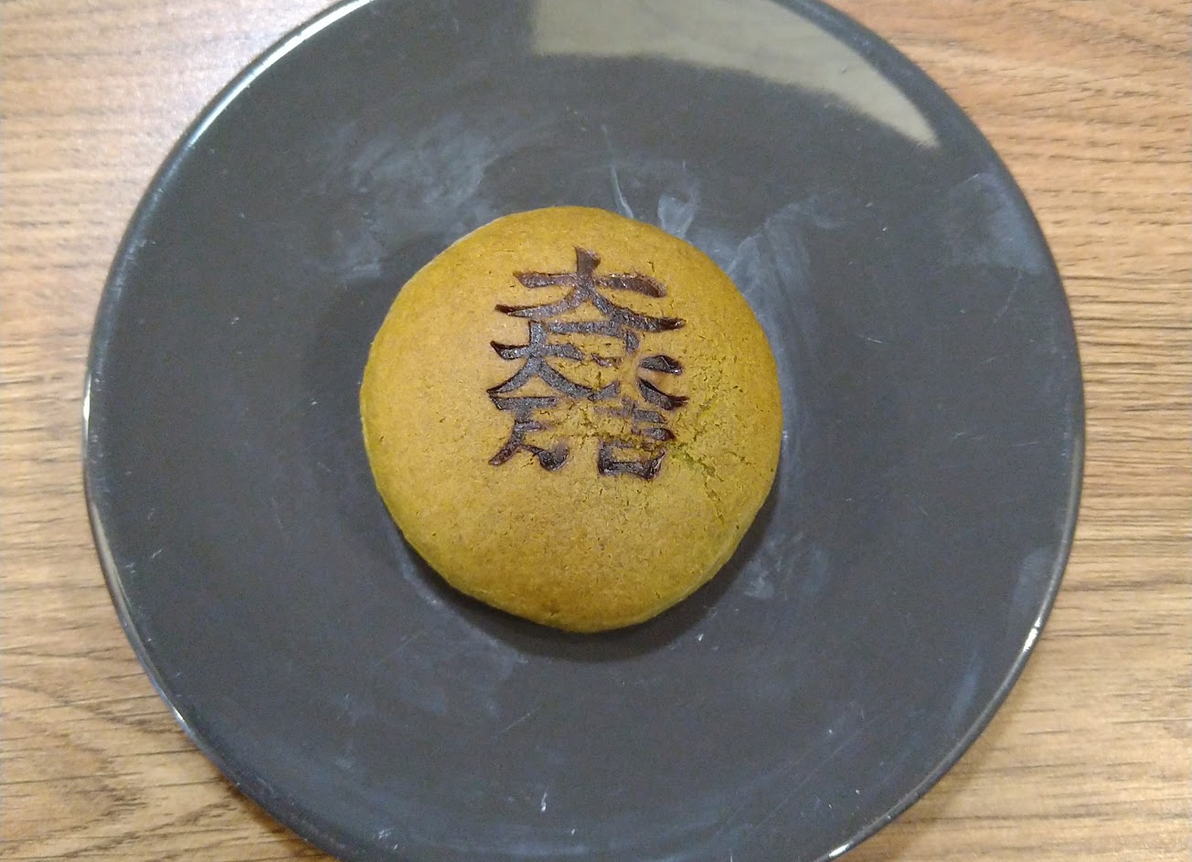 和菓子是蒸甜饅頭,味道尚可,但製作時粉沒有好好篩過,皮的部分吃起來是局部有顆粒結塊。
