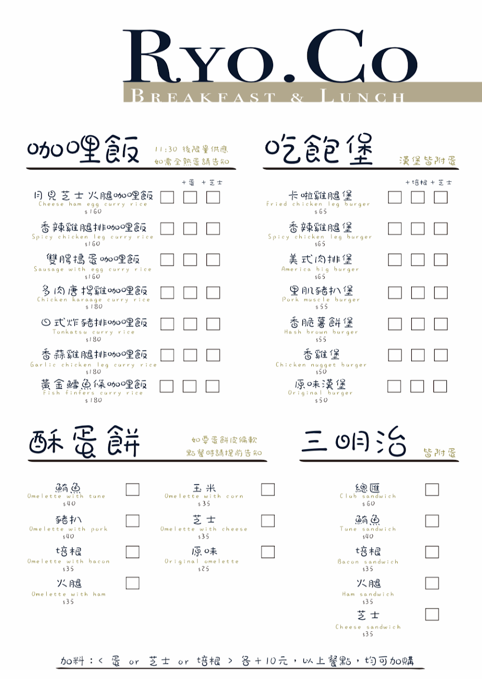 2024最新在地推薦餐廳的菜單_RYO.CO早午餐x咖哩的菜單、圖片