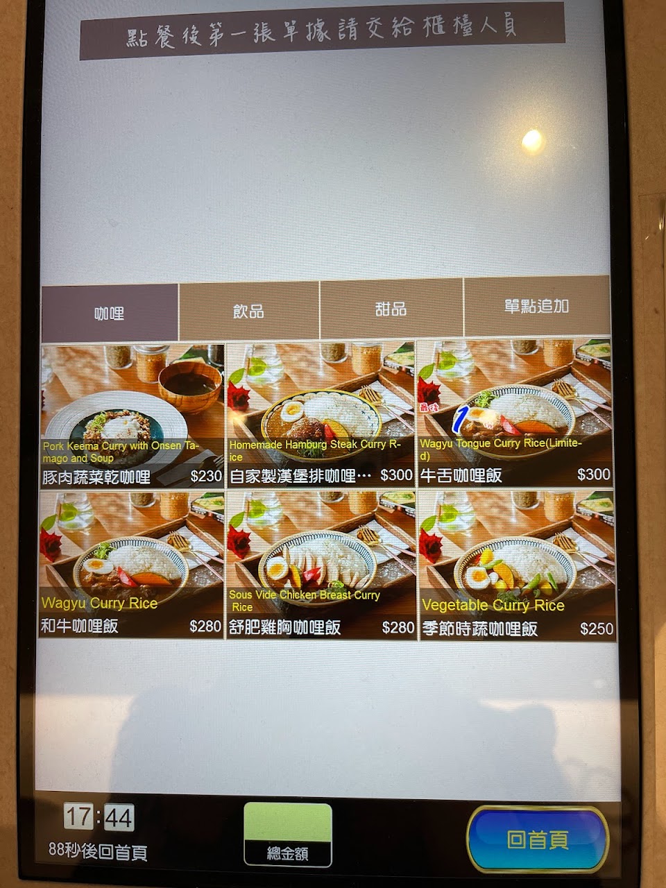 Step 2. 入座後自行用點餐機點餐,上餐速度尚可,用餐時間限制40分鐘