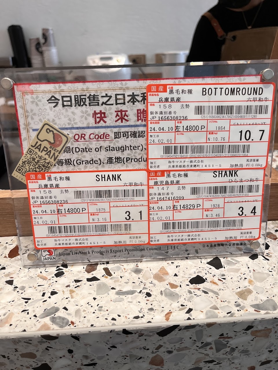 店家會公告今天料理使用的牛的資訊在櫃檯旁邊