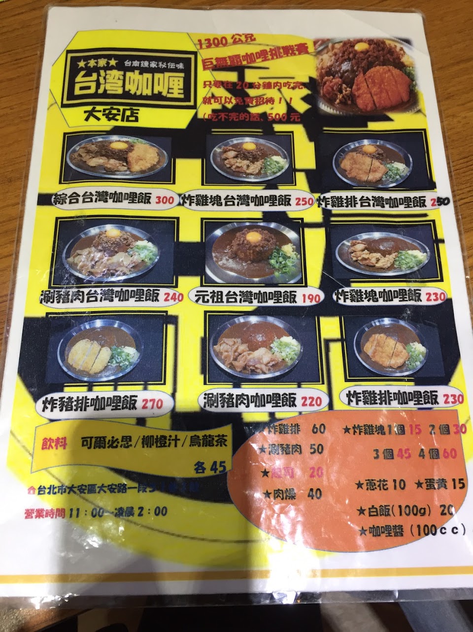 2024最新在地推薦餐廳的菜單_台灣咖哩 大安店的菜單、圖片