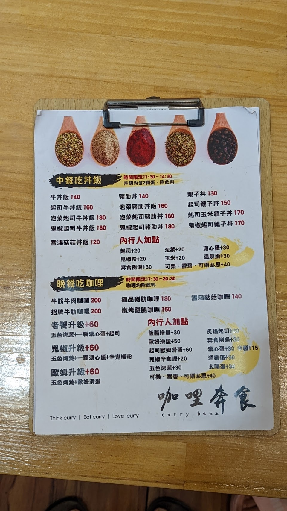 ?咖哩奔食 ?105台北市松山區南京東路五段23巷9弄2號 ? 11:30 – 14:30 && 17:30 – 20:30 ⠀ 我仔細看了照片才知道 奔食是benz的意思耶 #那有沒有咖哩飯中的勞斯萊斯 #那我要當工程師界中的金城5 豪放的招牌字體 然而內部裝潢卻簡單樸實 店內座位不多 若是用餐尖峰時間過來 難免不了稍等一下 #休旦己勒 ⠀ ?極品豬肋.咖哩奔 $170 ?嫩煎雞腿.咖哩奔 $160 ⠀ 我看了店家的IG簡介上寫 有溫度的人與咖哩 我就來好好感受一下 碰了一下老闆嗯溫溫的 #歪樓一下應該不會被檢舉吧 痾不是拉 老闆人很親切的介紹以外 吃的過程也會來問問口味如何 還說不怕辣可以加看看他們的辣油 辣油的的辛辣感跟咖哩味是疊加上去的 老闆沒騙人加辣hen可以 然後比起雞腿更推薦豬肋 軟嫩Q軟又有嚼勁 吃起來蠻特別的 選料跟煮咖哩的用心有感受到 #喜歡小店的溫馨跟人情味
