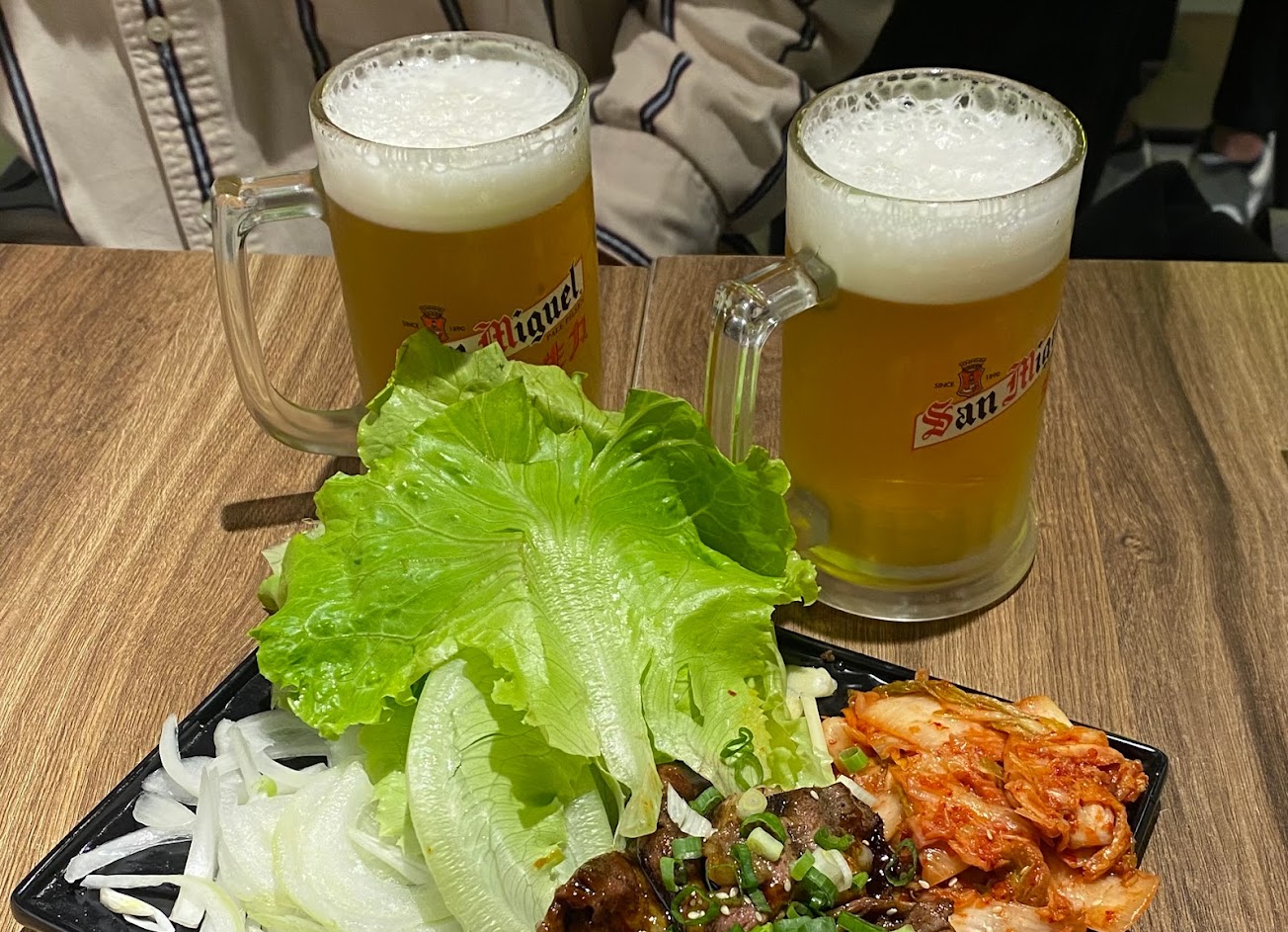 燒肉搭配生菜、泡菜、洋蔥、蒜片 超級好吃