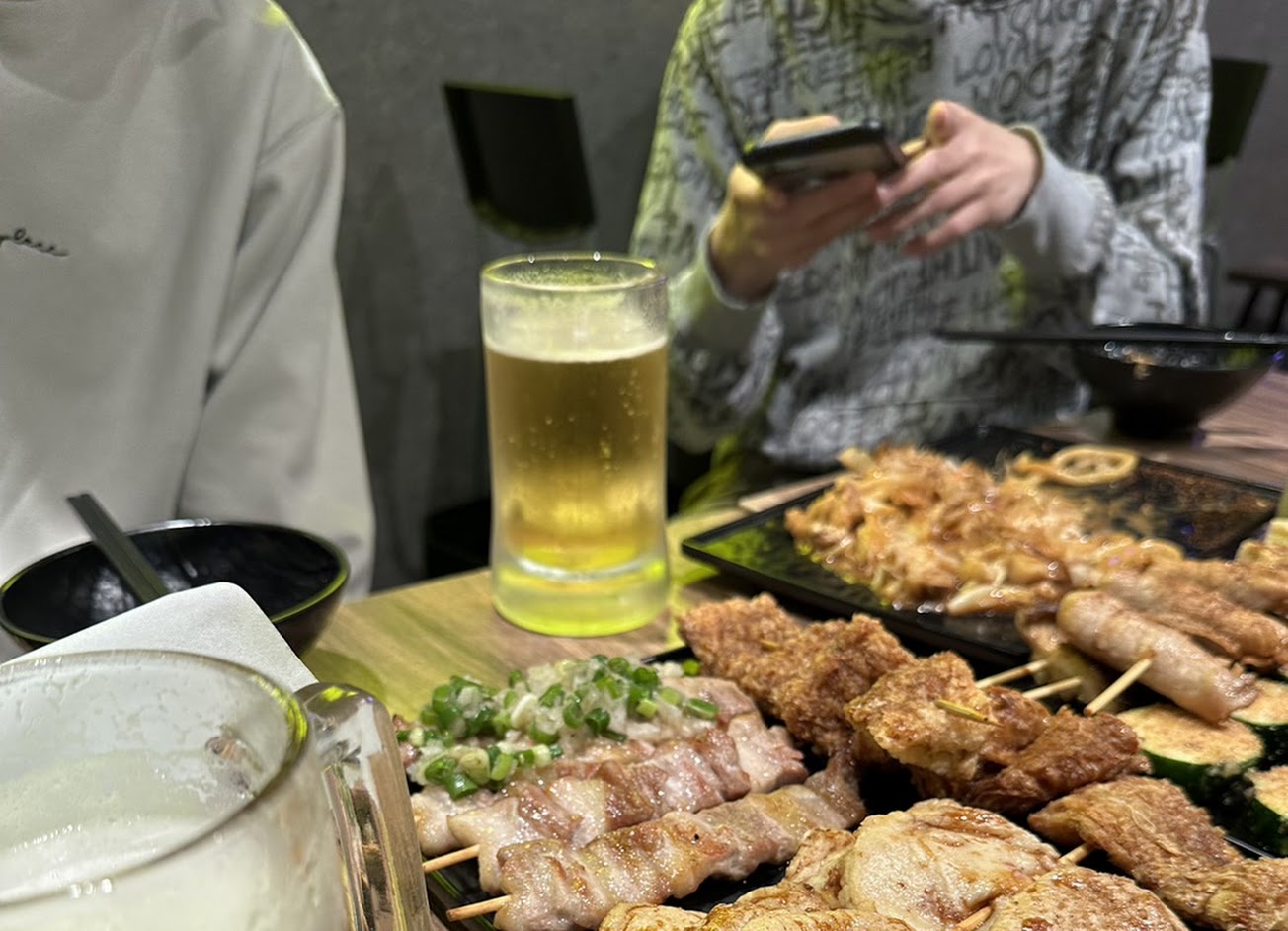 串在一起位在捷運忠孝復興站附近的巷子裡,交通便利 氣氛放鬆 價格平實,店內裝潢簡單乾淨,座位規劃也不會太擁擠,蠻舒適的,主打平價串燒生啤~