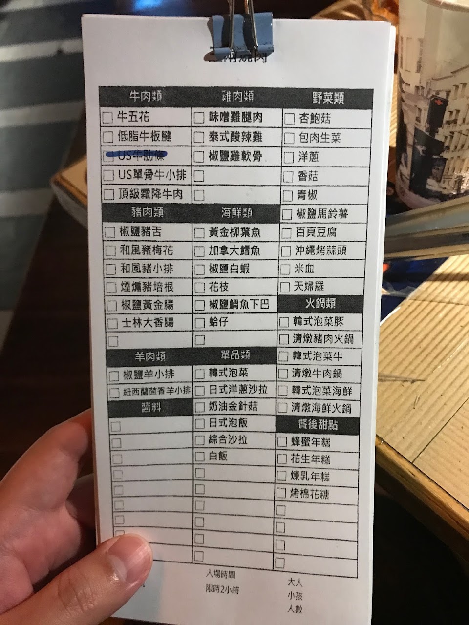 一進去跟老闆說兩位 菜單用摔的