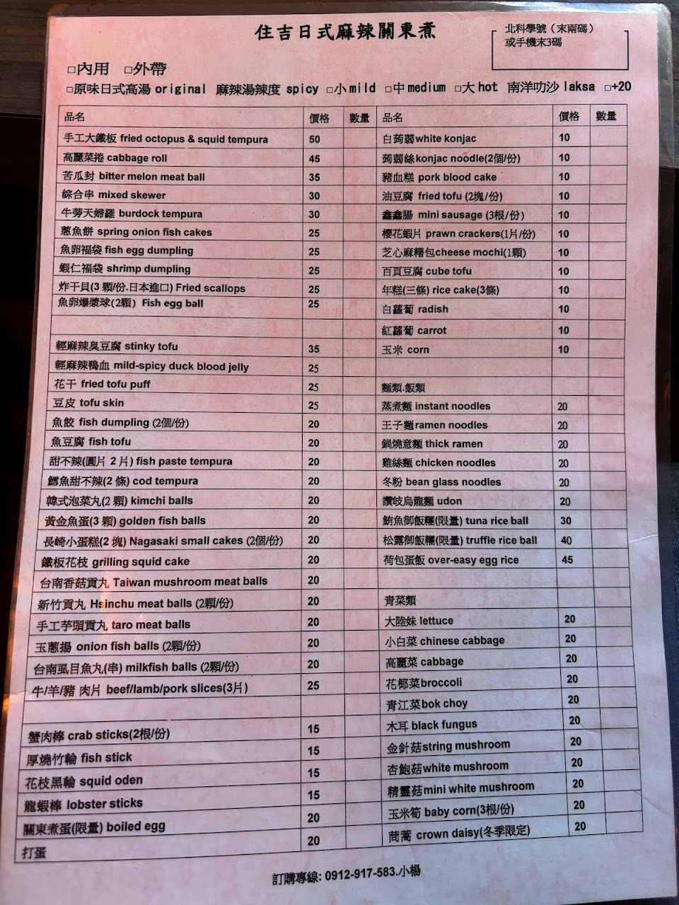 位置在捷運忠孝復興站安東街附近,是我從大學時期就在吃的台式關東煮?,如果是北科學生來店消費可以折五塊,營業時間是下午四點半到晚上十一點半,禮拜六公休,很適合冬天熬夜肚子餓,但又不想太罪惡時來暖暖胃。座位的部分是偏半室外的,沒有冷氣喔。然後,如果是跟朋友來吃的話,單是分開劃喔,餐後結帳。