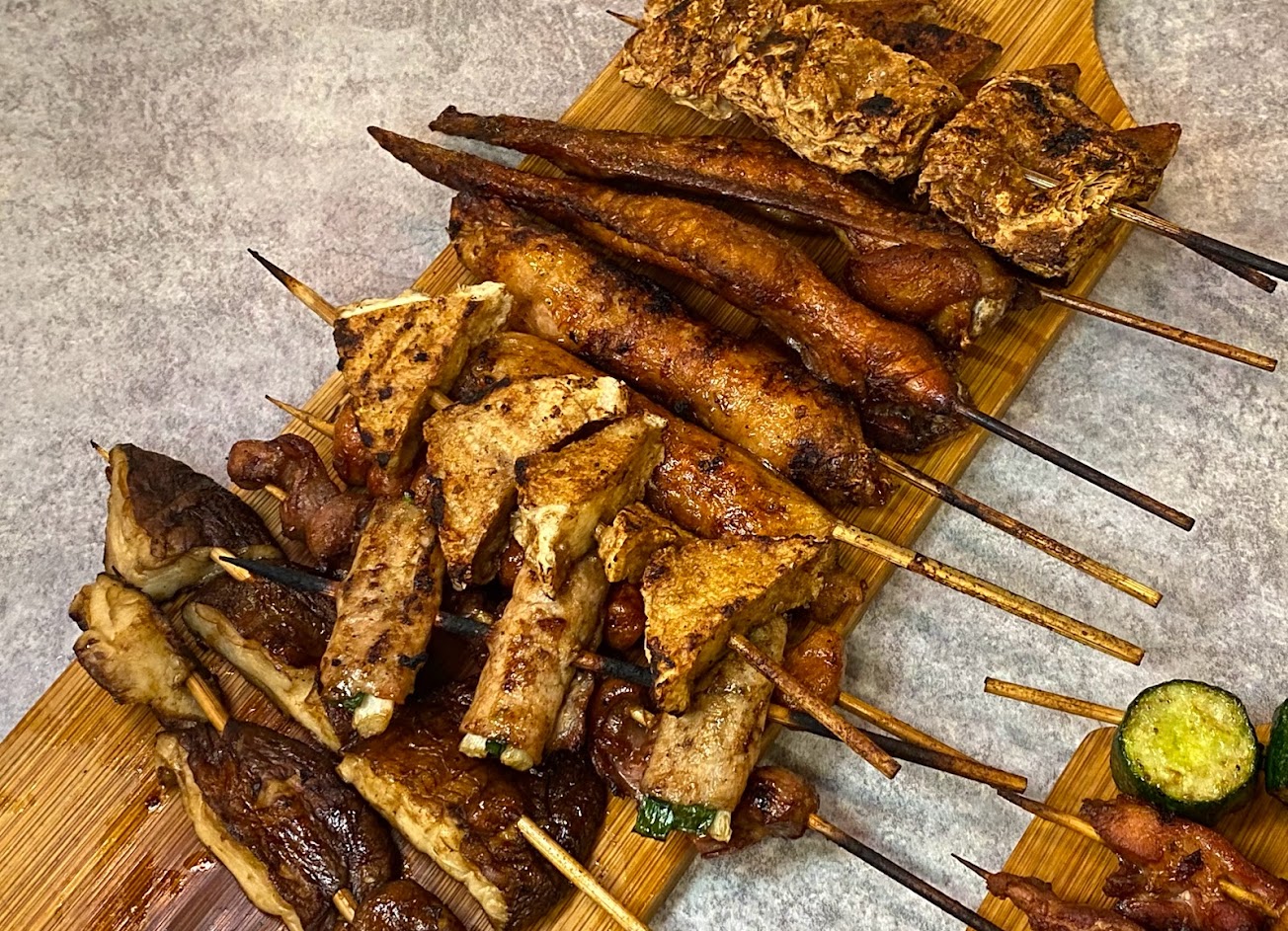 烤功了得,醬料不會太死鹹,多汁雞肉捲、培根麻糬串、雞皮、菇類、花椰菜都很好吃!