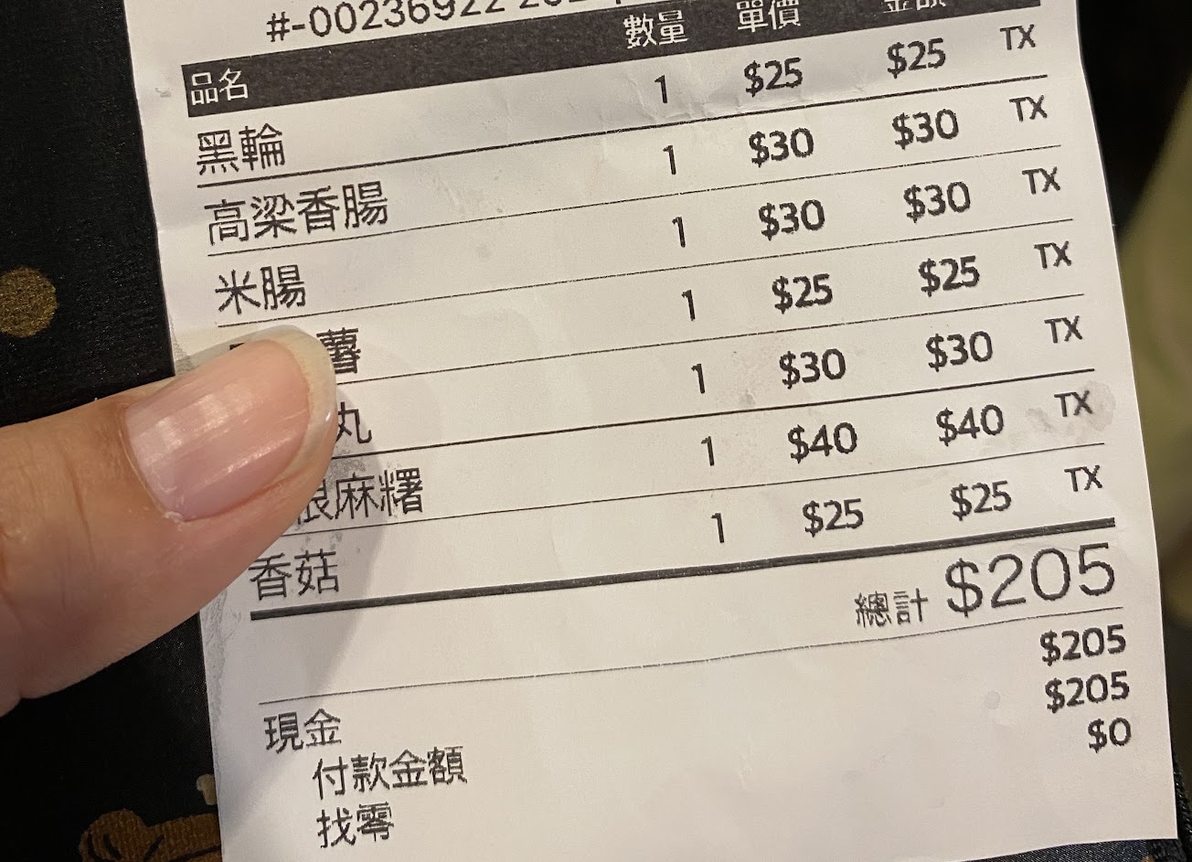 想再回購:杏鮑菇、香菇、馬鈴薯、糯米椒、雞腿串、銀絲卷、牛肉 同行友人很愛:豆皮、花枝丸 其他就可吃可不吃 但都不錯~ 下次想挑平日來XD 服務 內用
