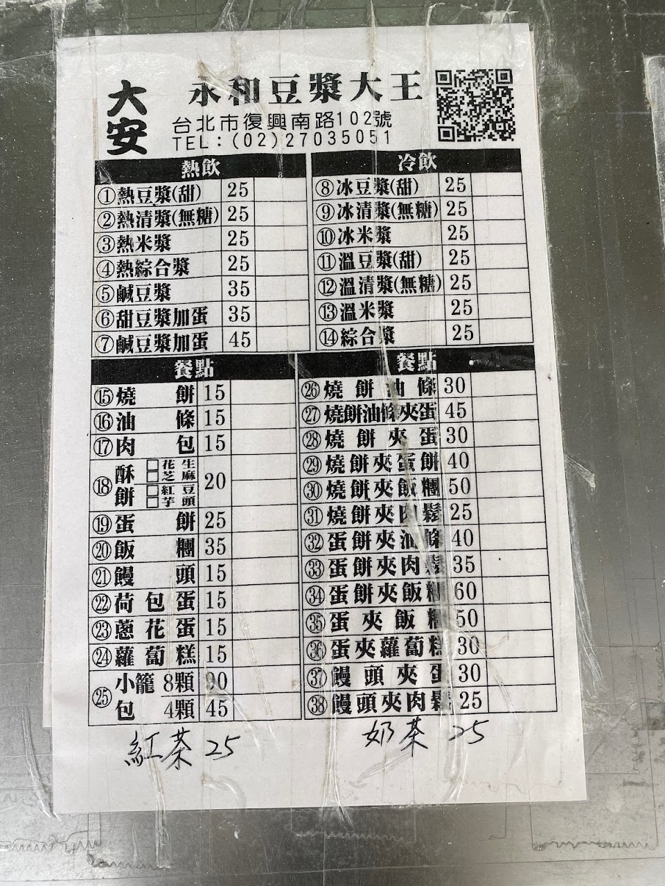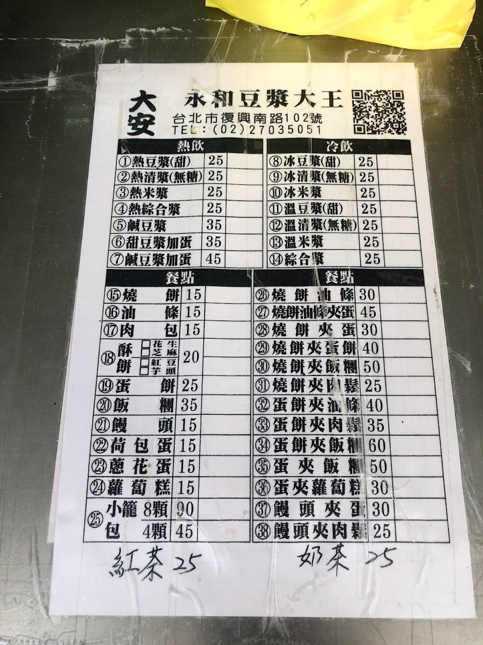2024最新在地推薦餐廳的菜單_永和豆漿大王的菜單、圖片