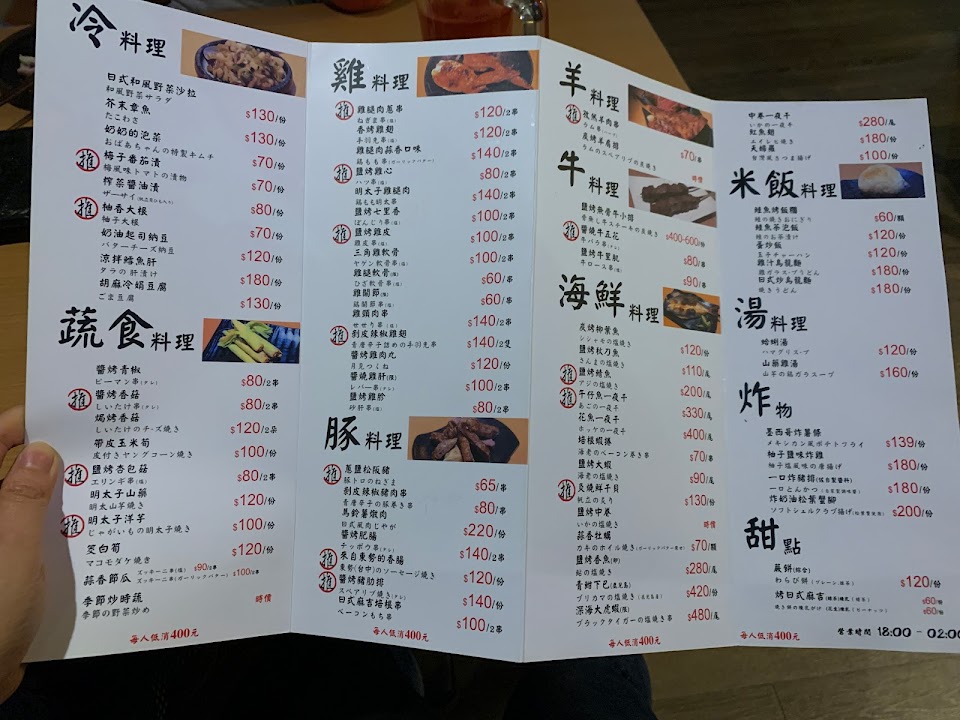 食材新鮮 闆闆料理食材很用心,烤功水準之上。闆娘親切?推下酒菜烤羊肉串和雞關節? …